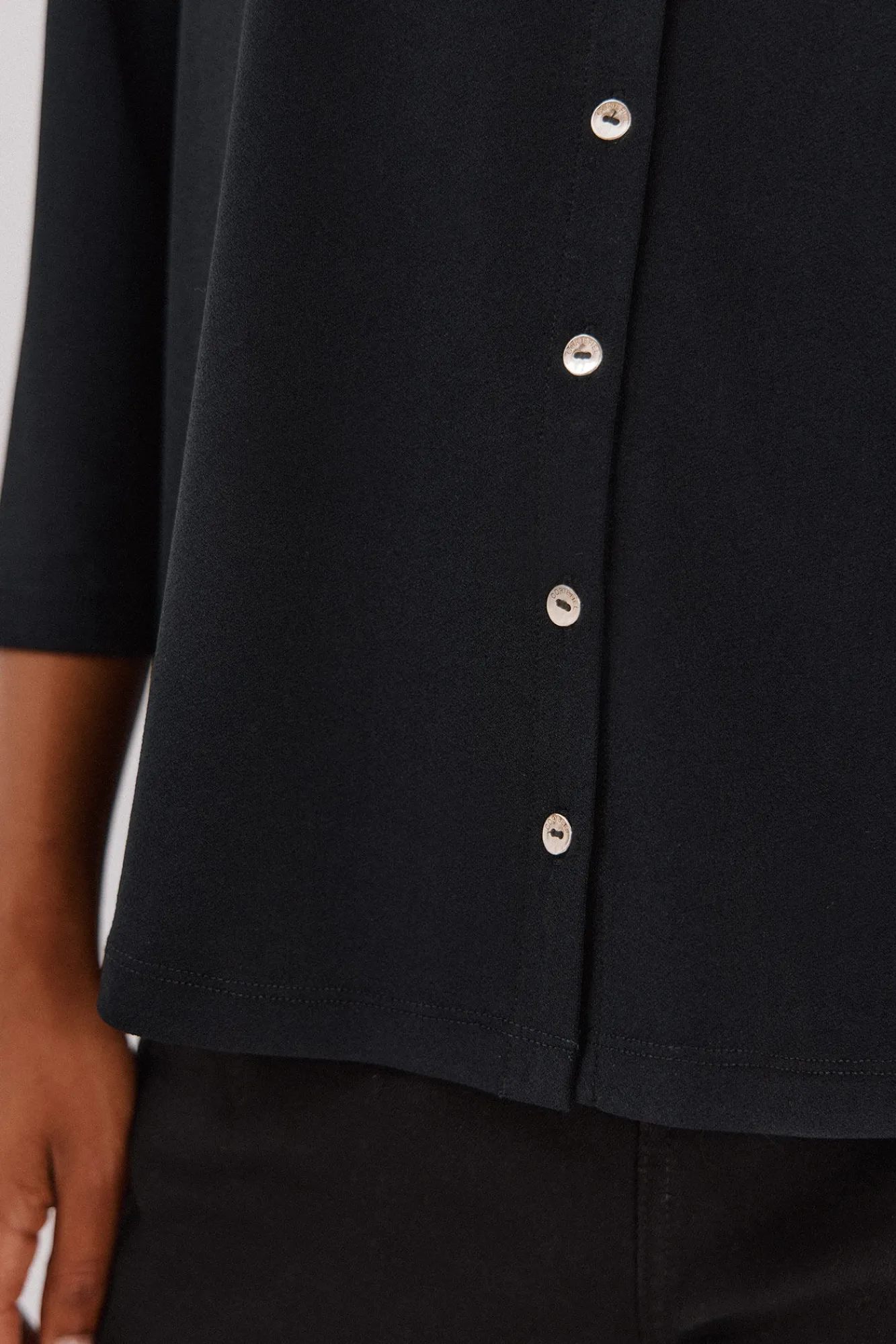 Decote declinado com botões dourados