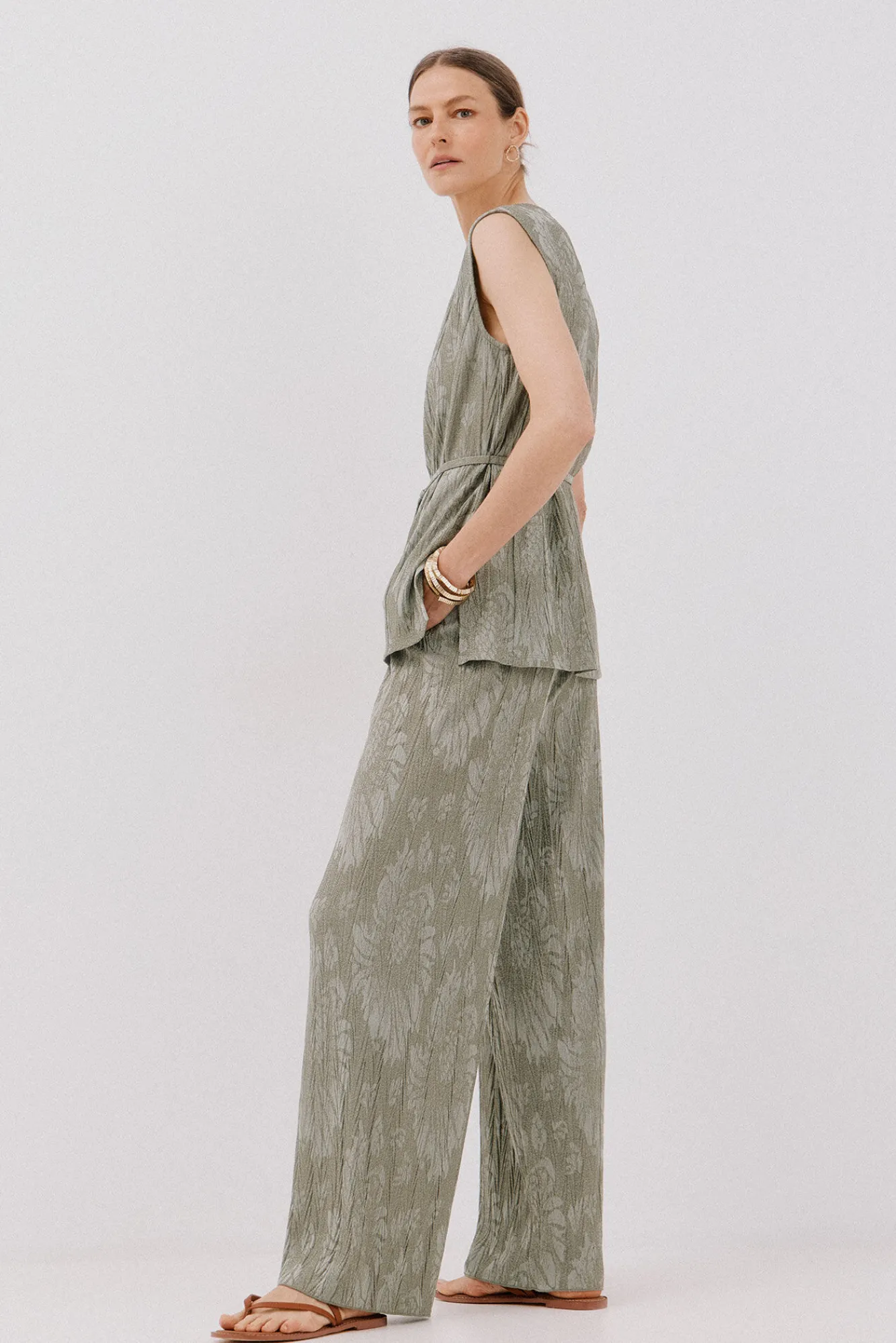 -Tecido plissado com jacquard