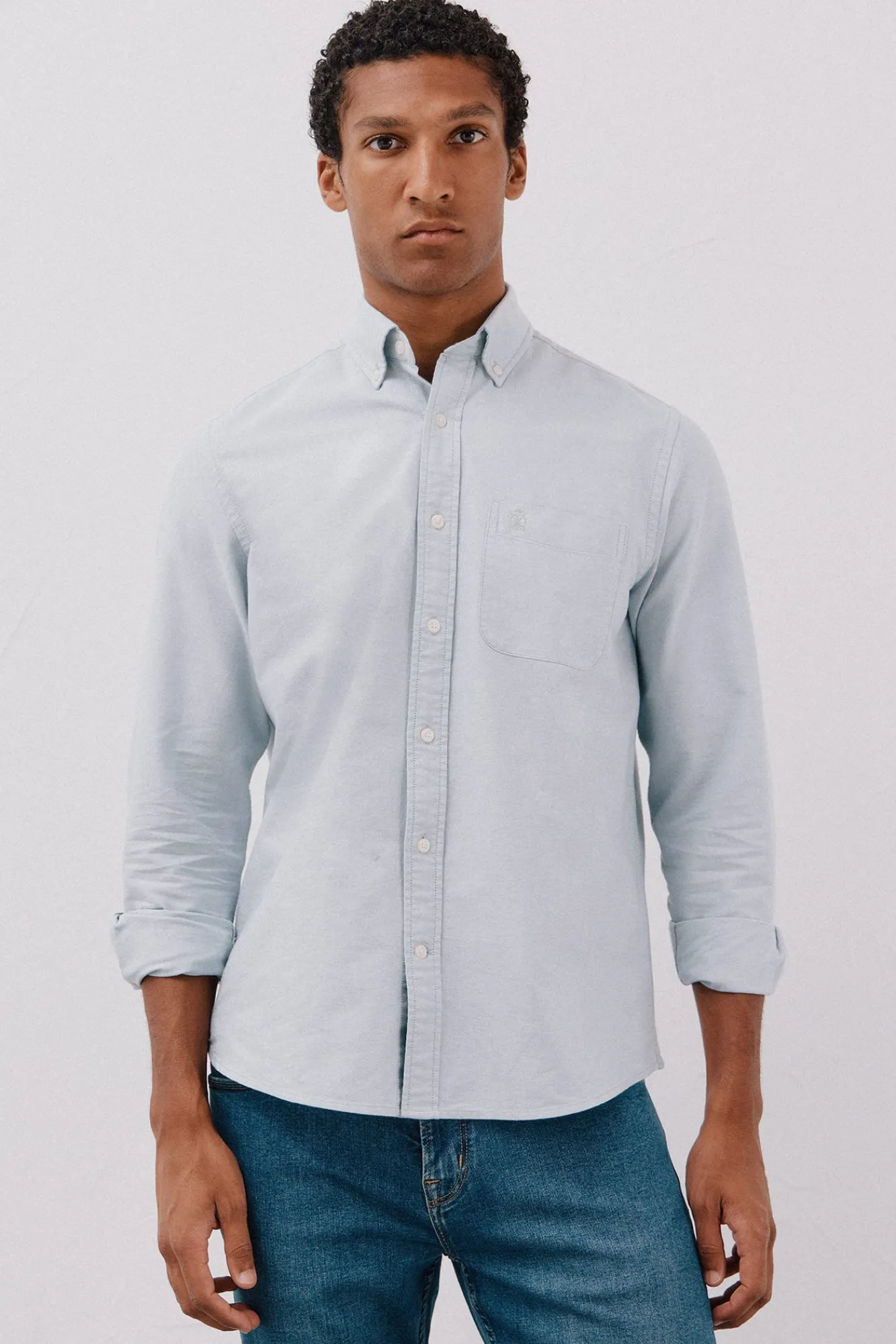 -Gola botões, bolso no peito com logo bordado