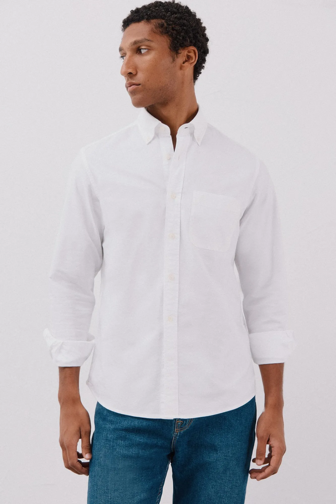 -Gola botões, bolso no peito com logo bordado