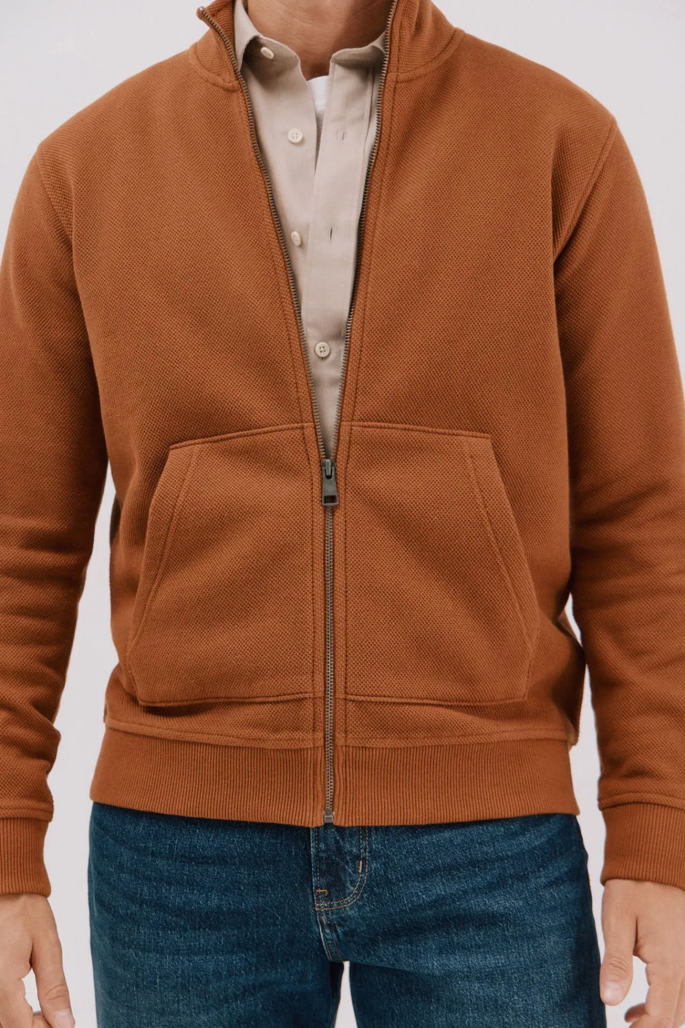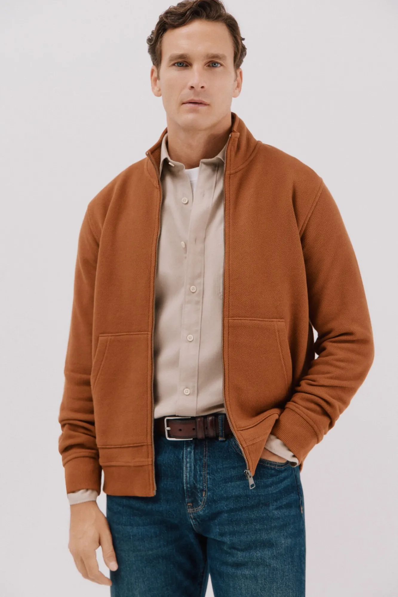 Cortefiel Camisolas–Regular fit-Structured fleece fabric-Front zip fastening and kangaroo pockets-By buying our cotton products, you’re supporting our investment in the Better Cotton Initiative. This product is sourced via a system of mass balance and therefo Castanho
