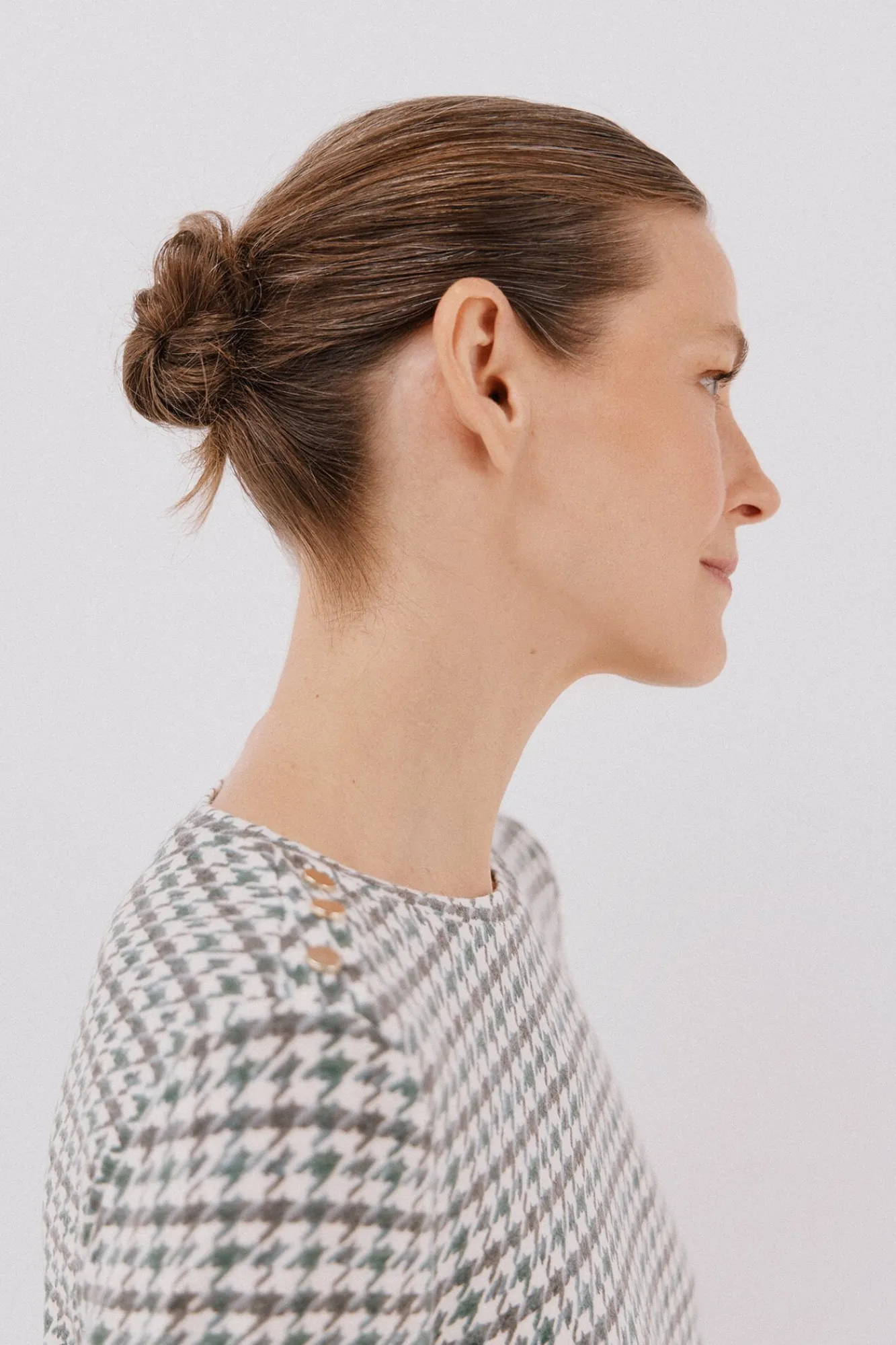 -Decote redondo com botões dourados no ombro