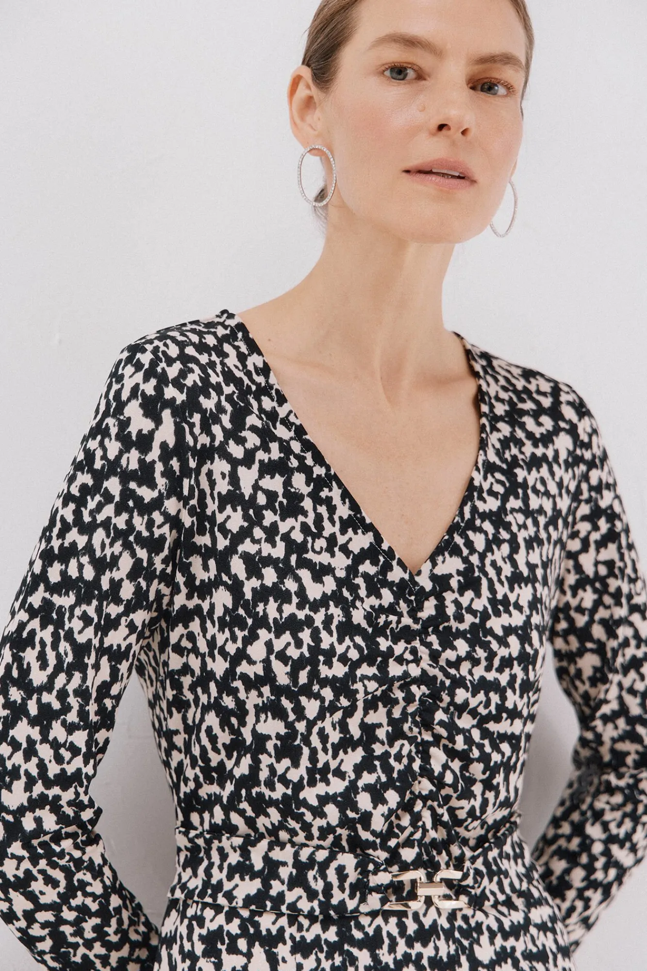 -Cinto franzido na frente com fivela de metal dourado