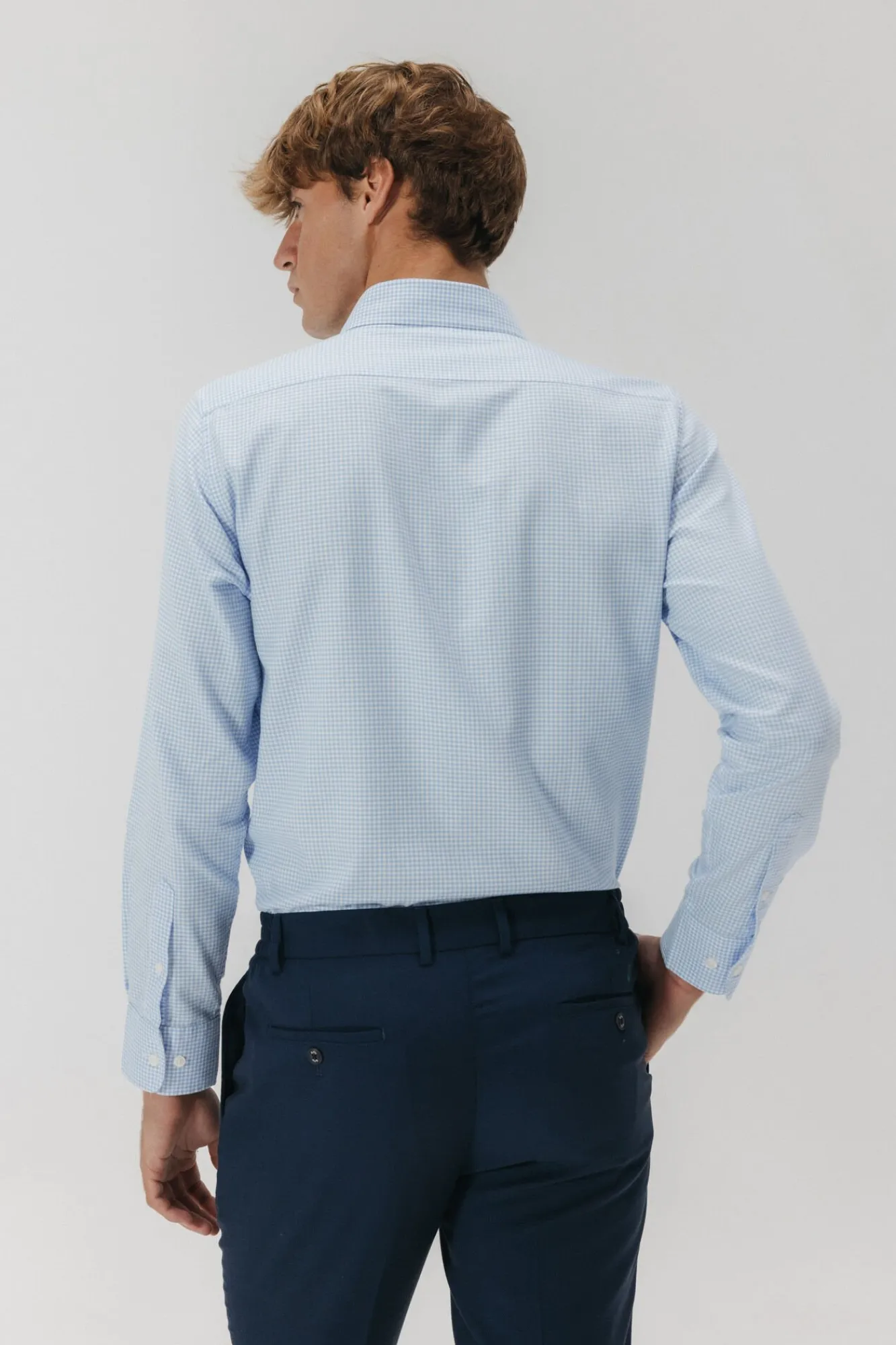 elPulpo Camisas|Camisas Clássicas-Camisa semi-vestida xadrez Oxford Azul