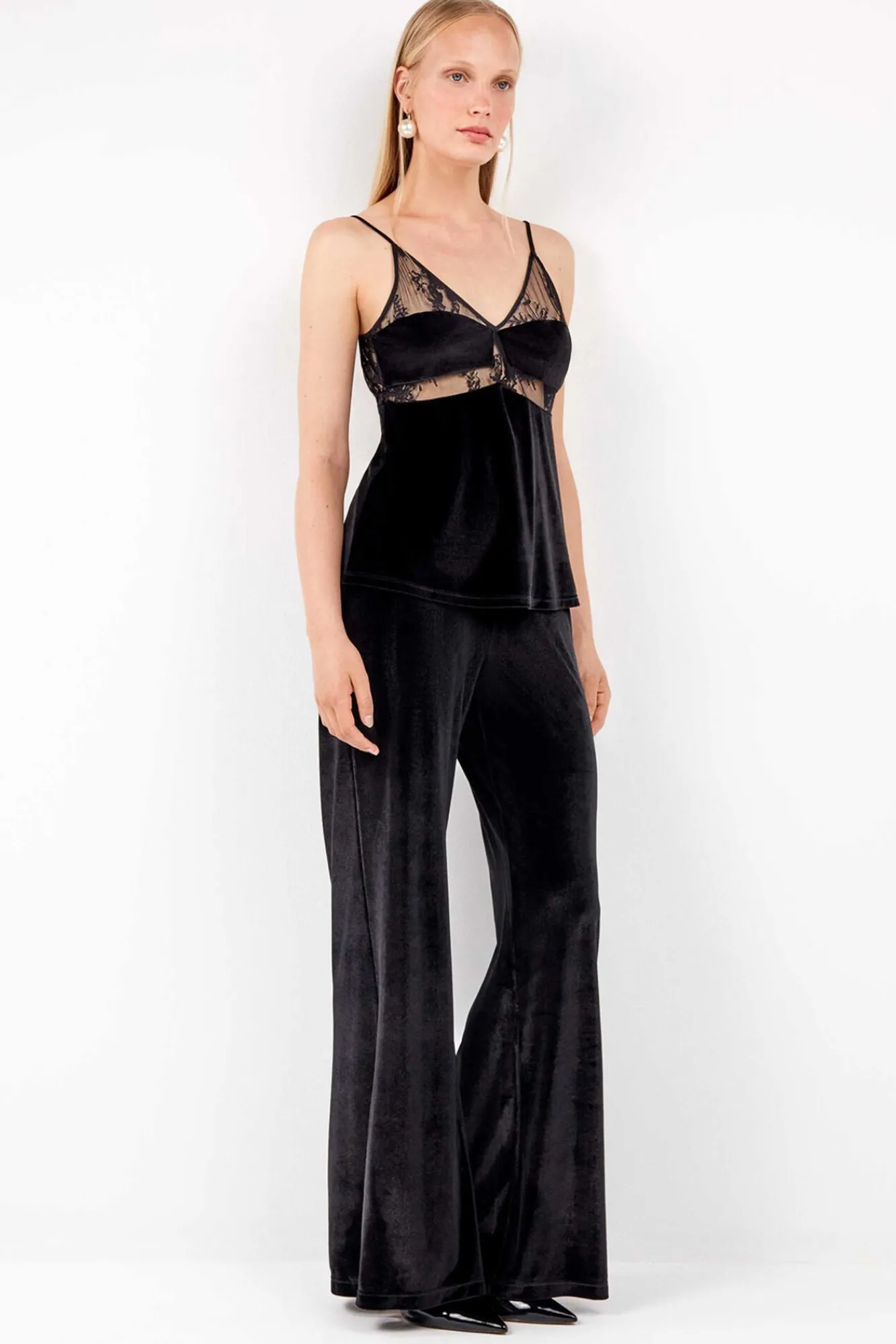 Gisela Calças-Calça longas de veludo elástico com design elegante preto