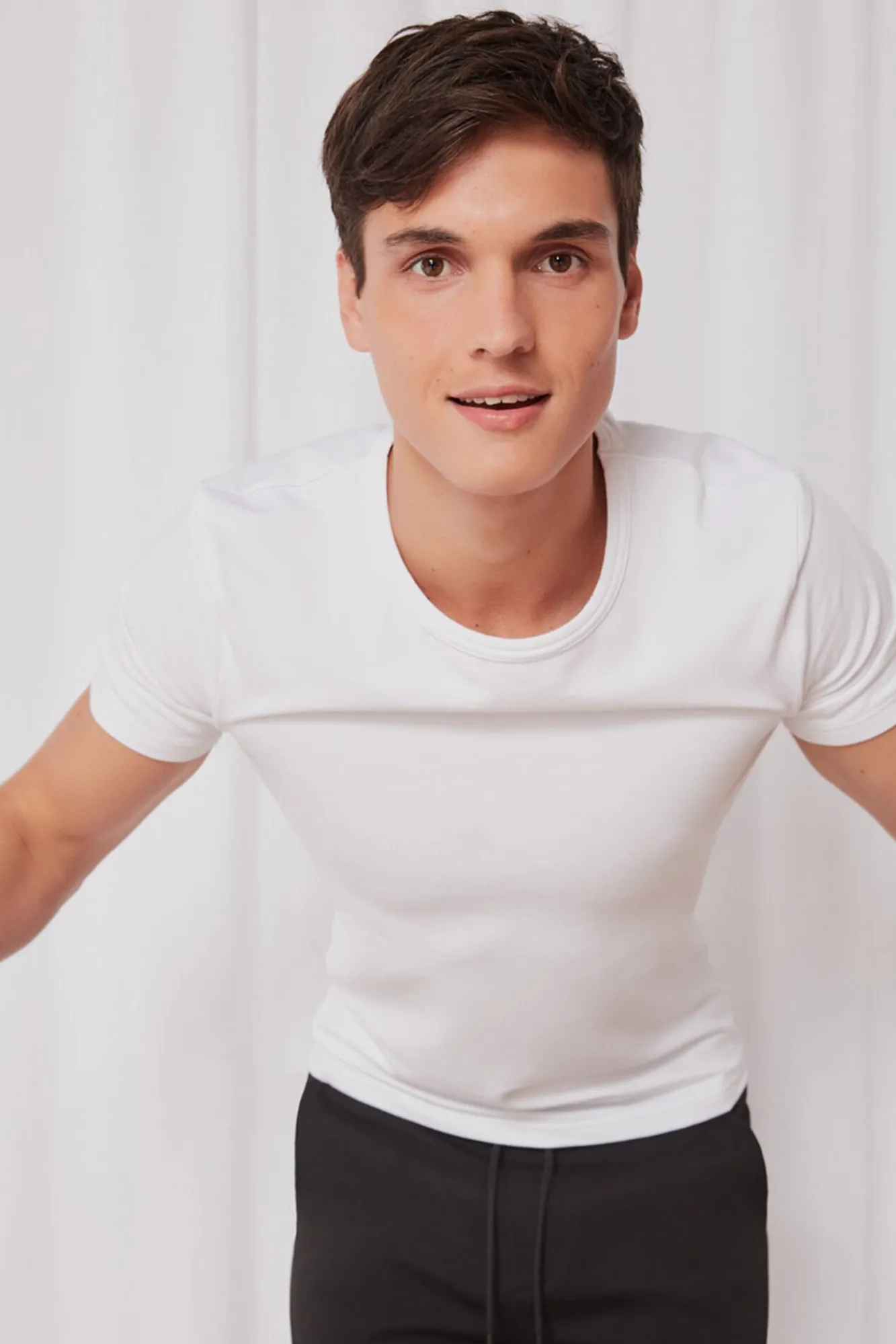 46% algodão, 46% modal, 8% elastano