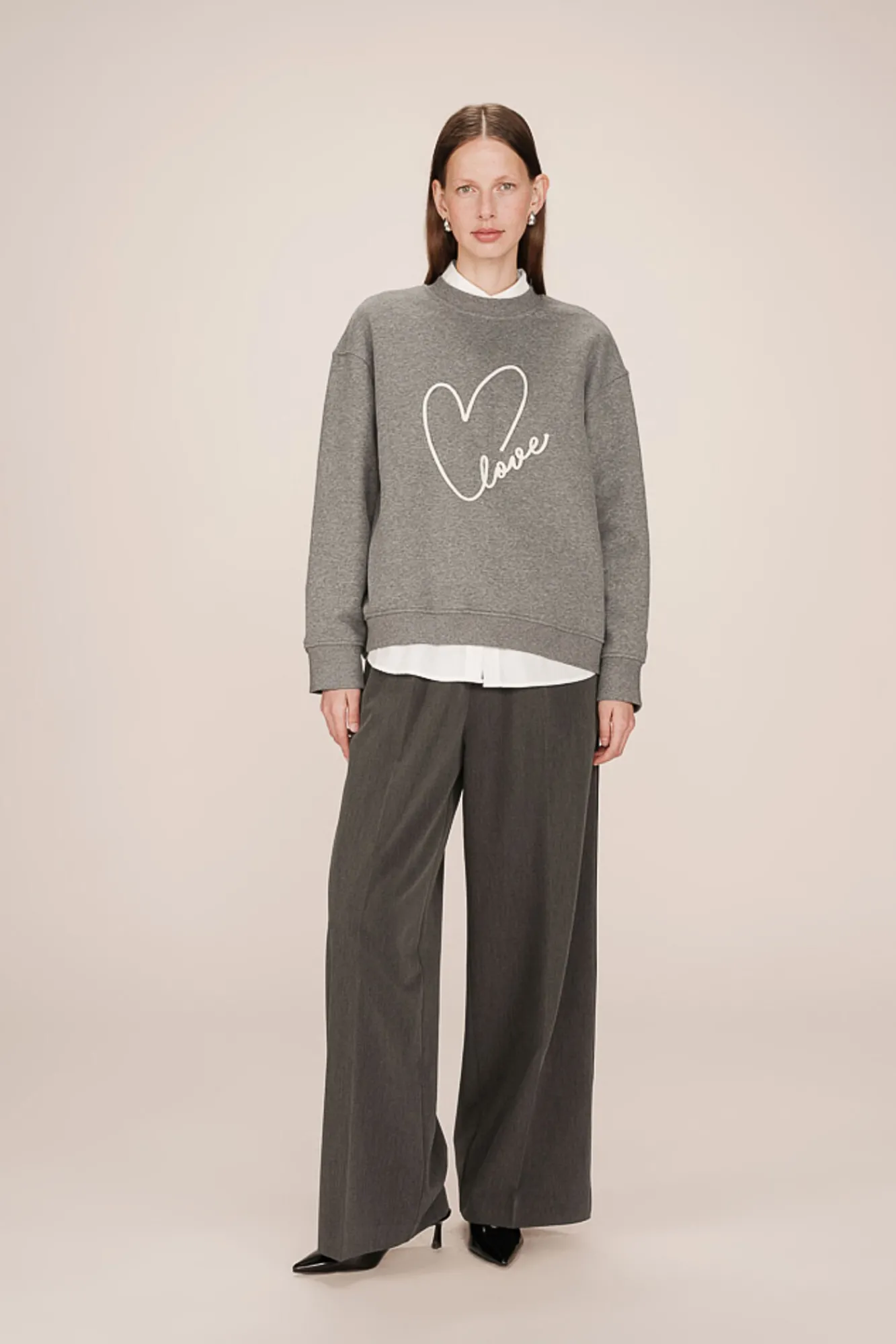 – Caimento solto. Gola redonda.