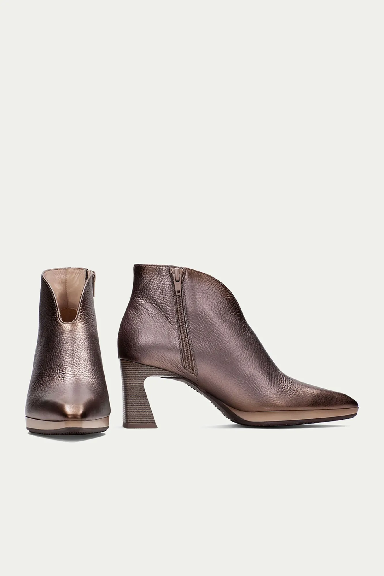 – Plataforma leve de 1 cm e salto geométrico confortável de 7 cm com acabamento em madeira
