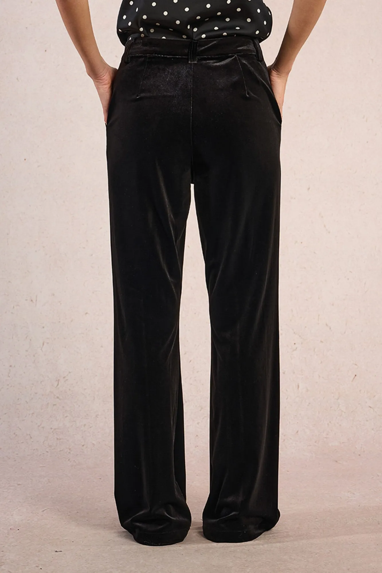– Modelo com efeito veludo e bolsos enviesados.
