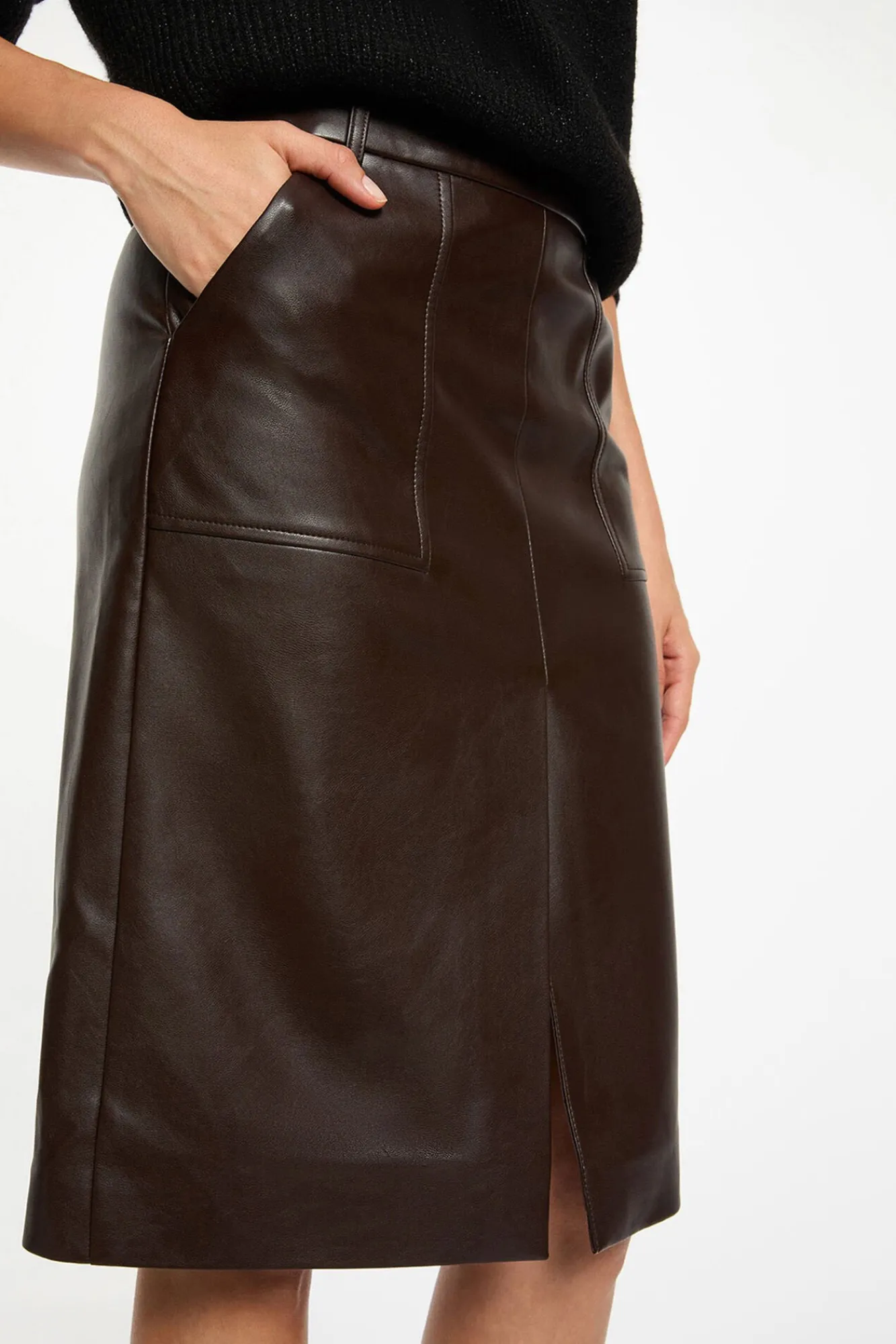 – Saia na altura do joelho