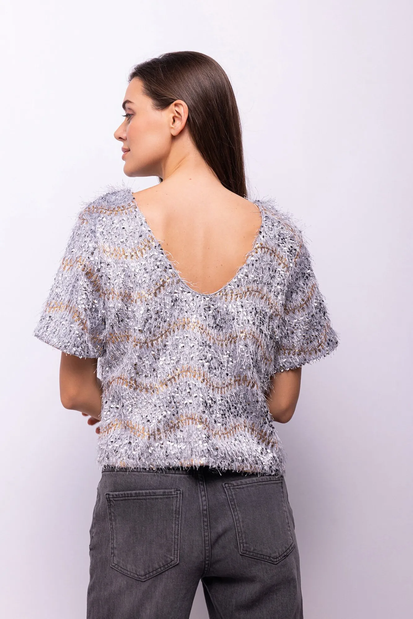 – Decote redondo e decote em V nas costas