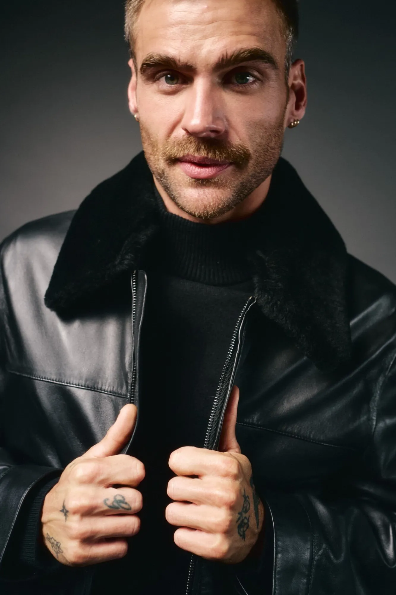 -Casaco de pele de ovelha com acabamento em napa.