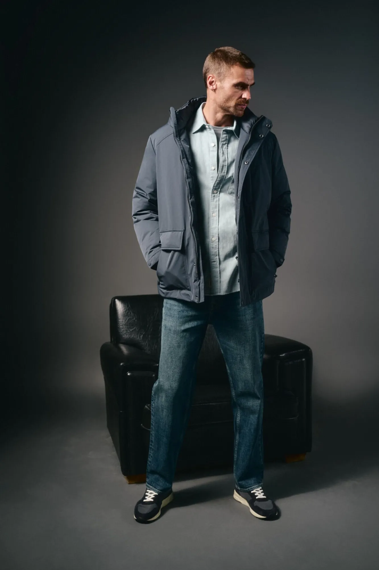 -Parka confeccionada em tecido técnico repelente à água.