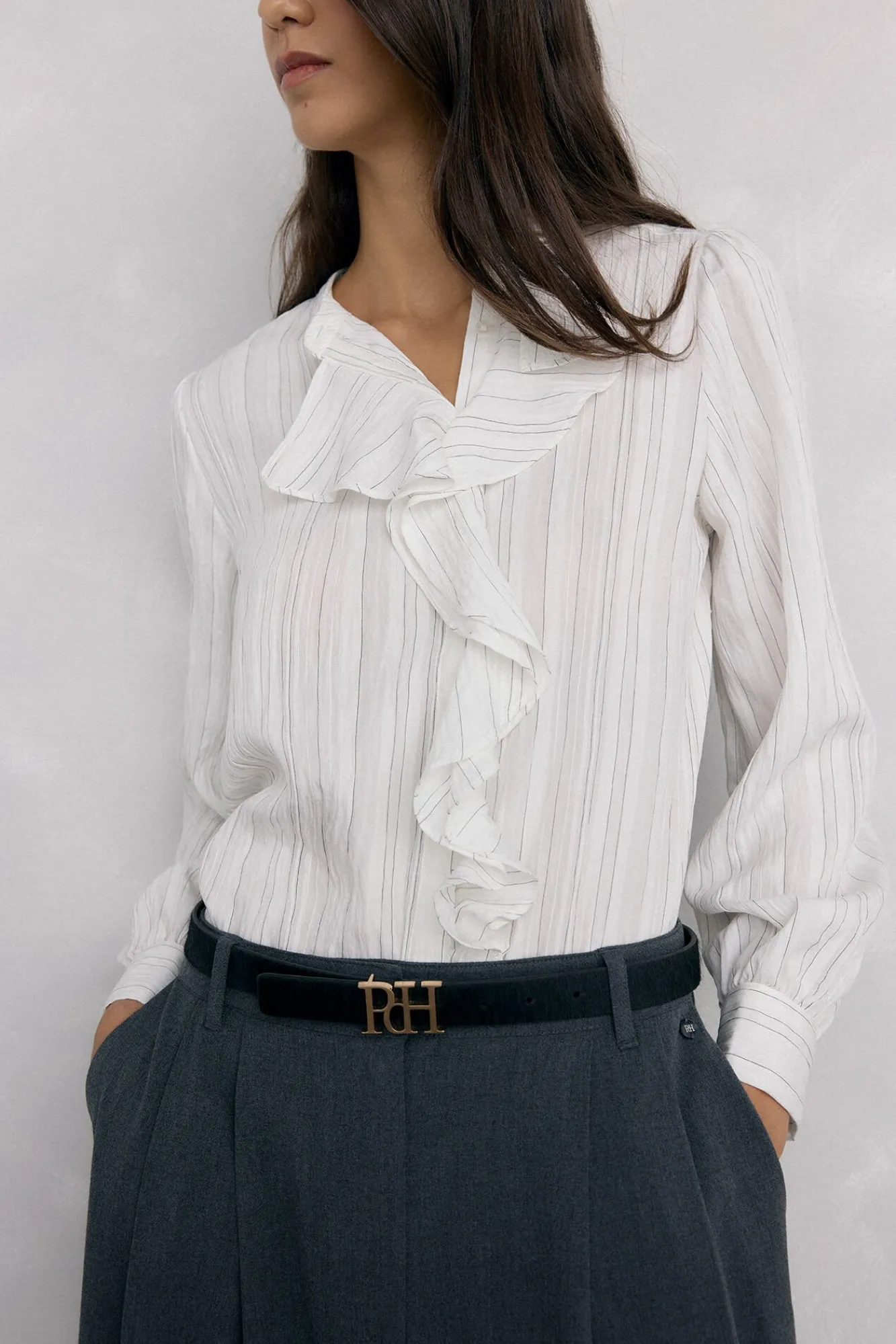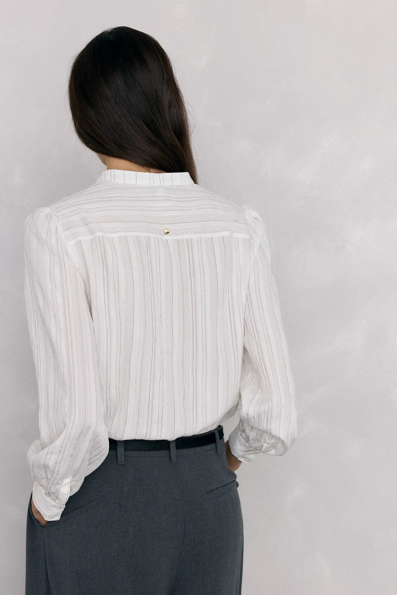 – Mangas compridas com franzido no ombro