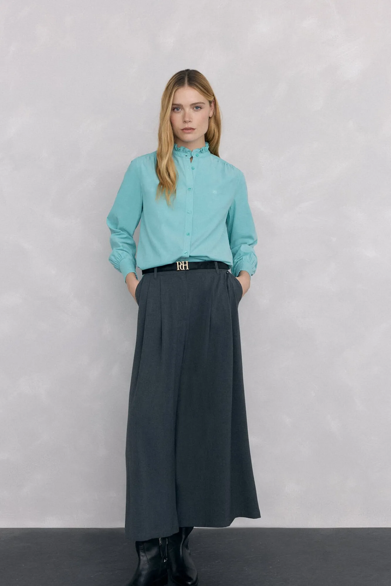 -Mangas compridas com franzidos no ombro