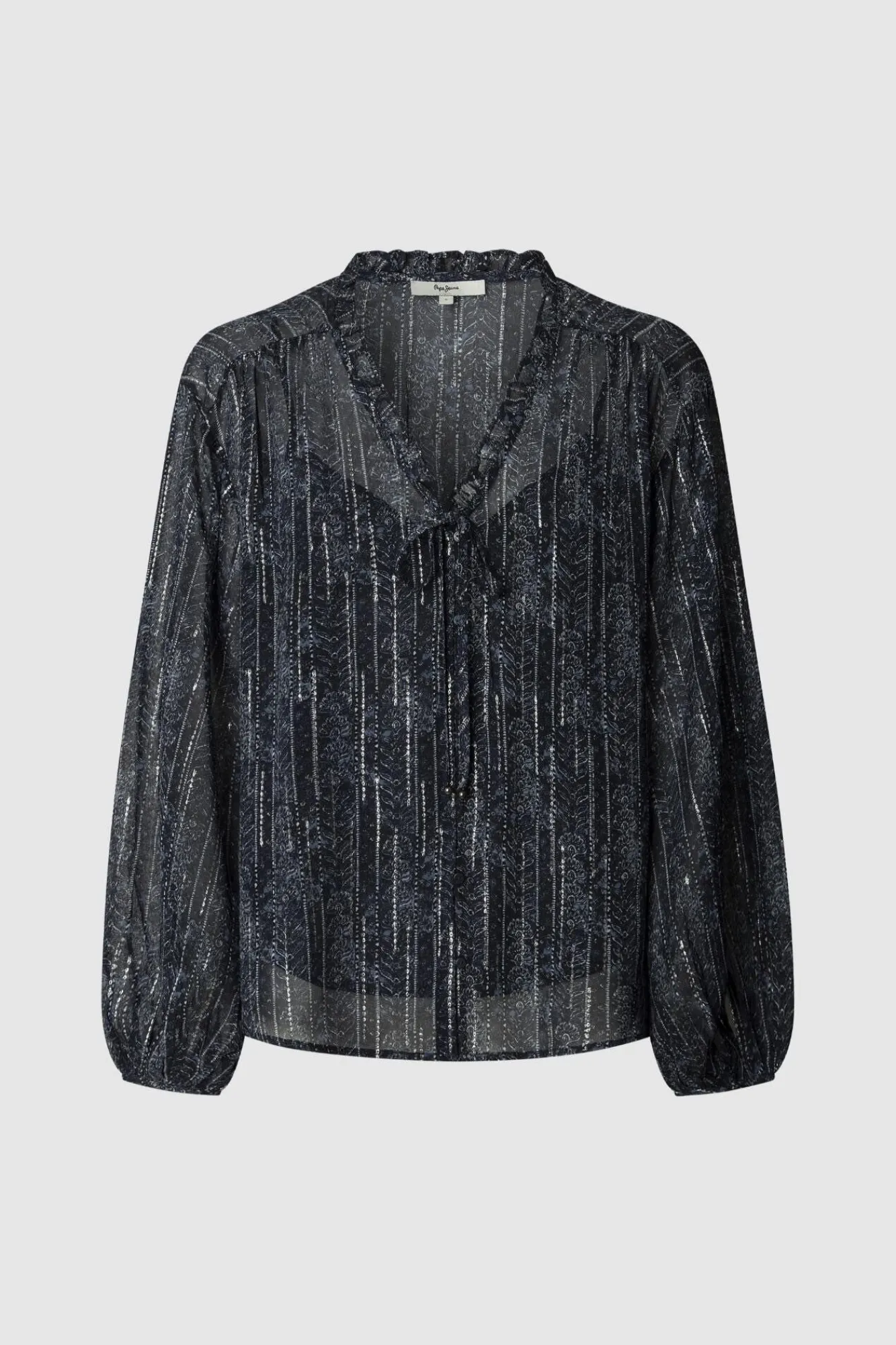 – Decote em bico com mini babados e laço no decote