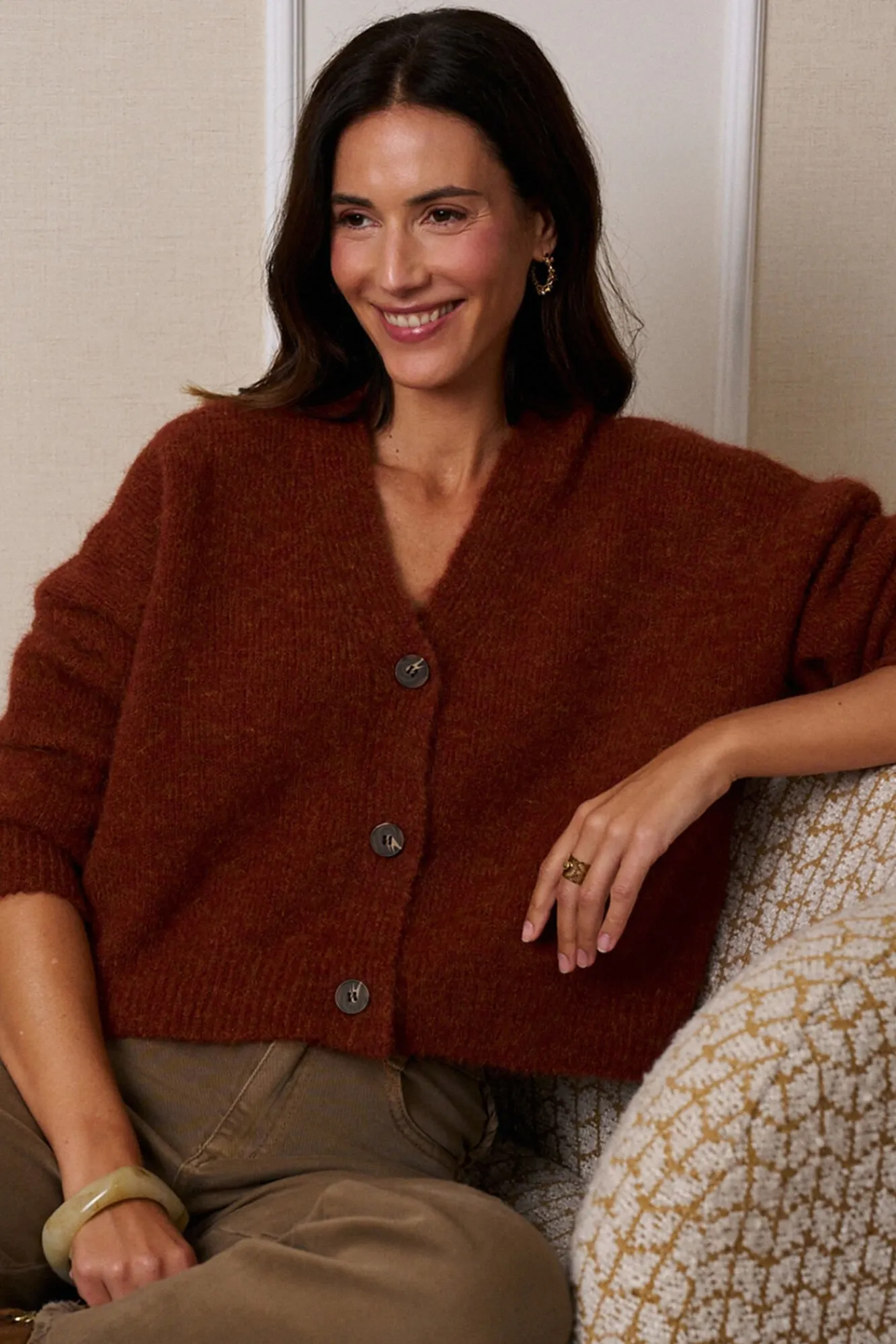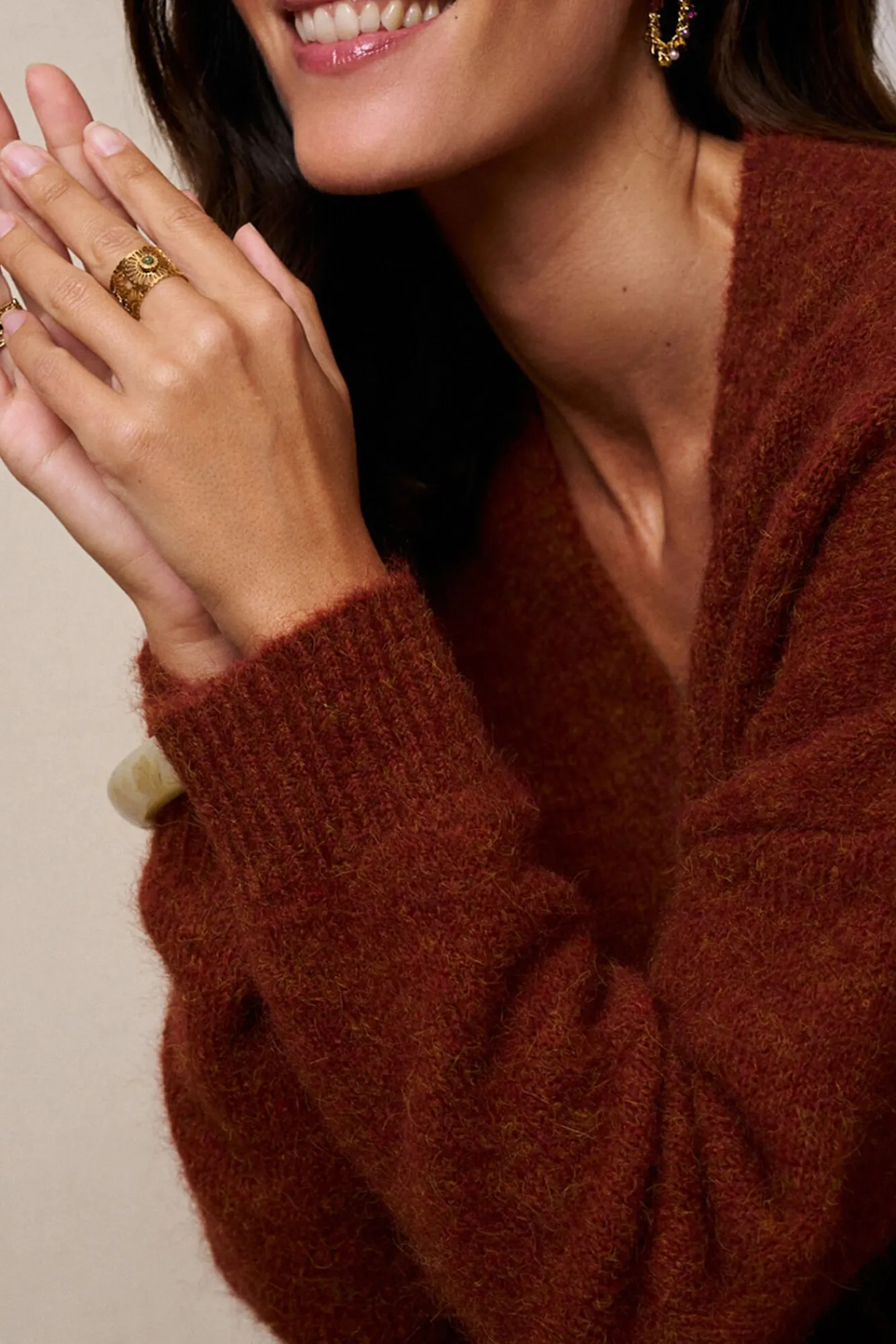 80% poliéster, 15% lã, 5% elastano