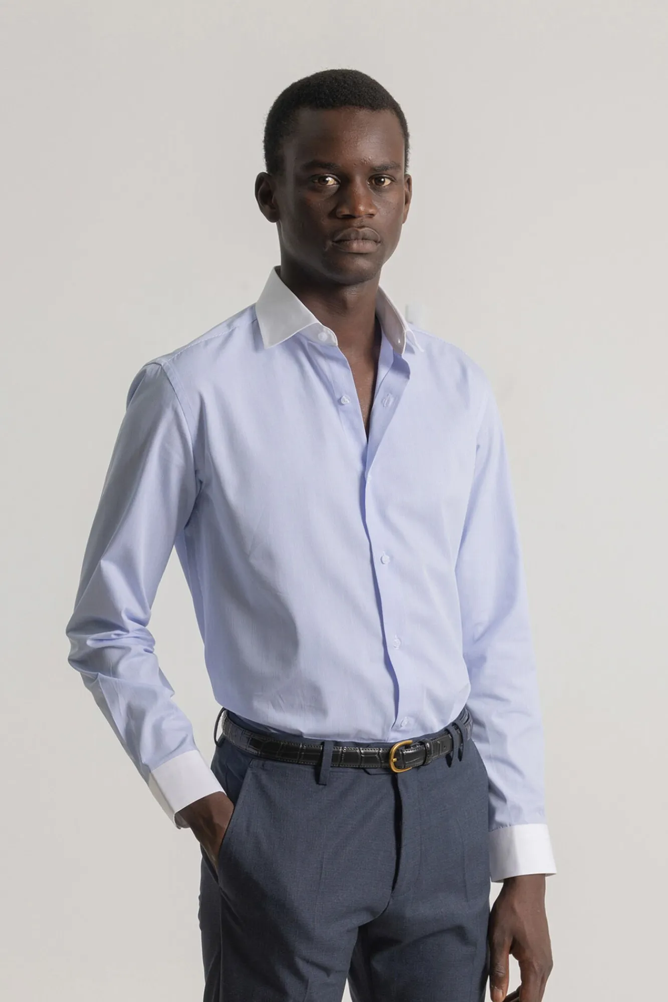 Mangas compridas com punhos redondos contrastantes.