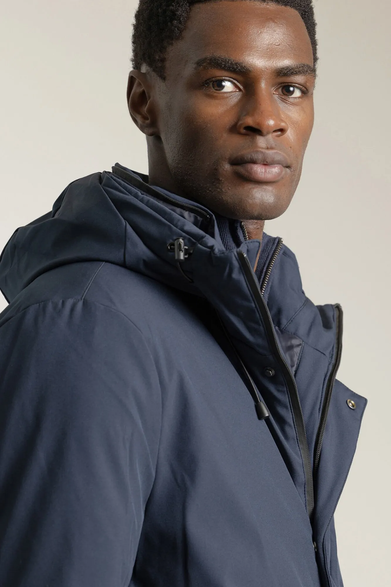 Parka acolchoada com capuz.