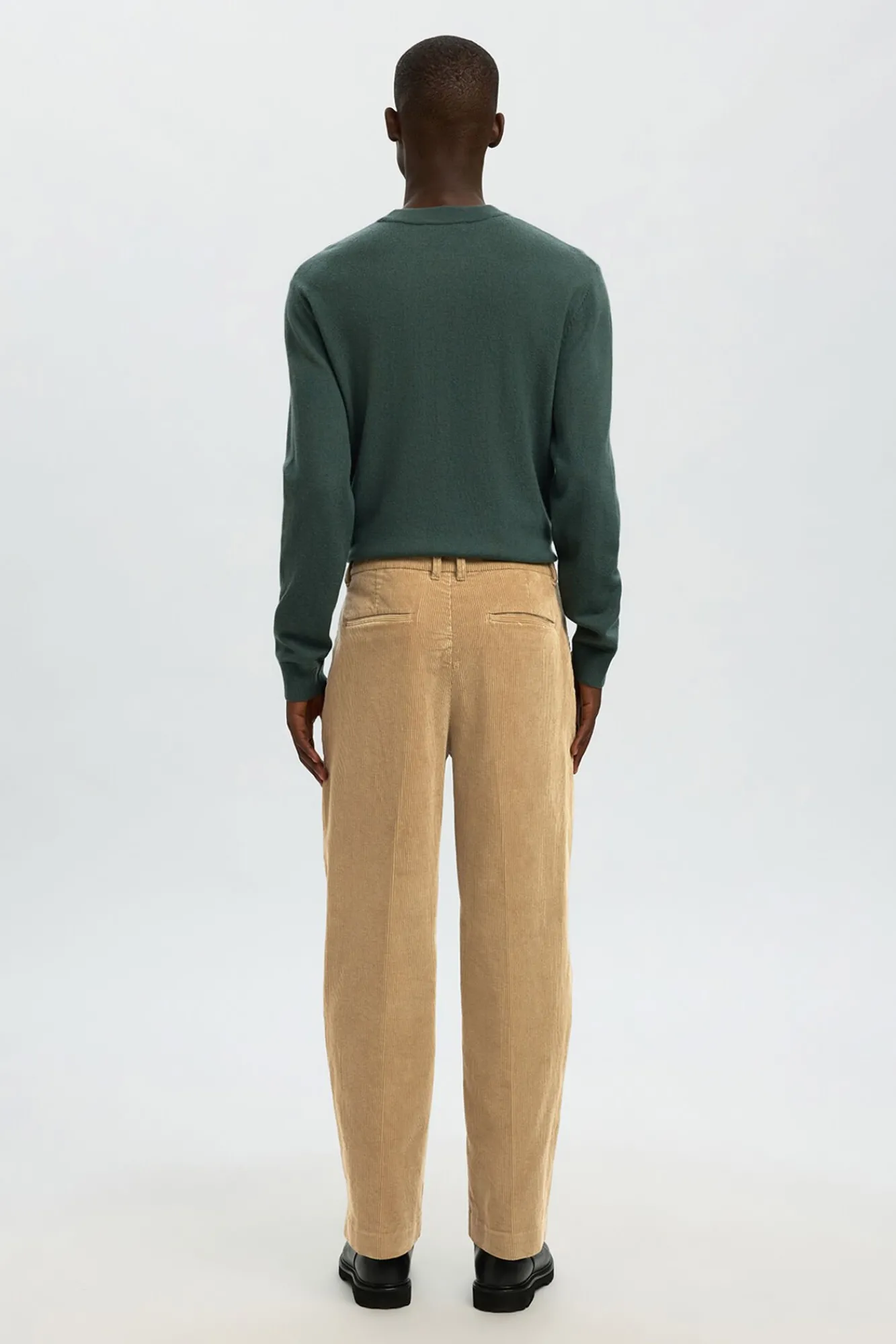 – Bolsos laterais e traseiros. Cintura média