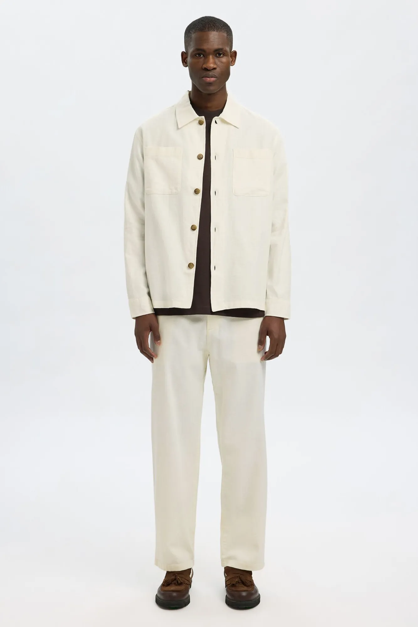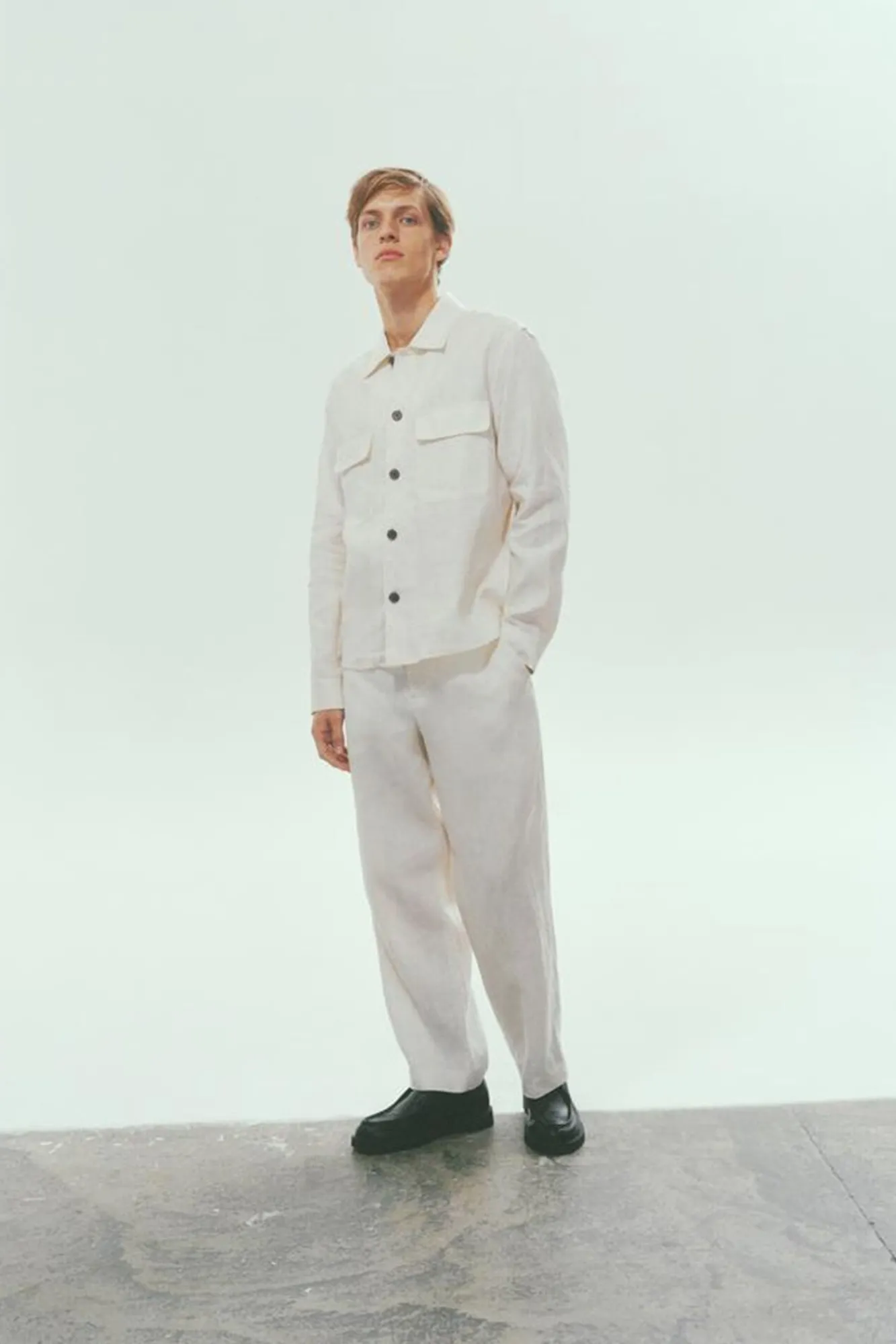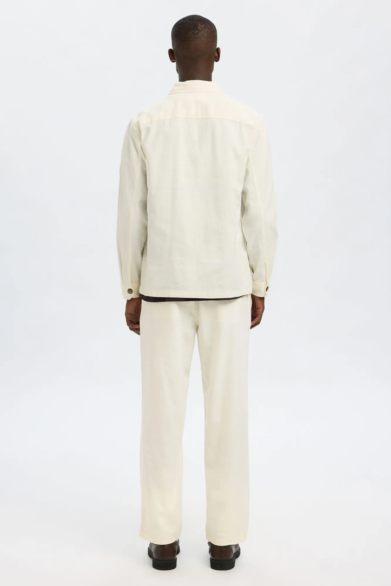 54% algodão, 45% linho, 1% elastano