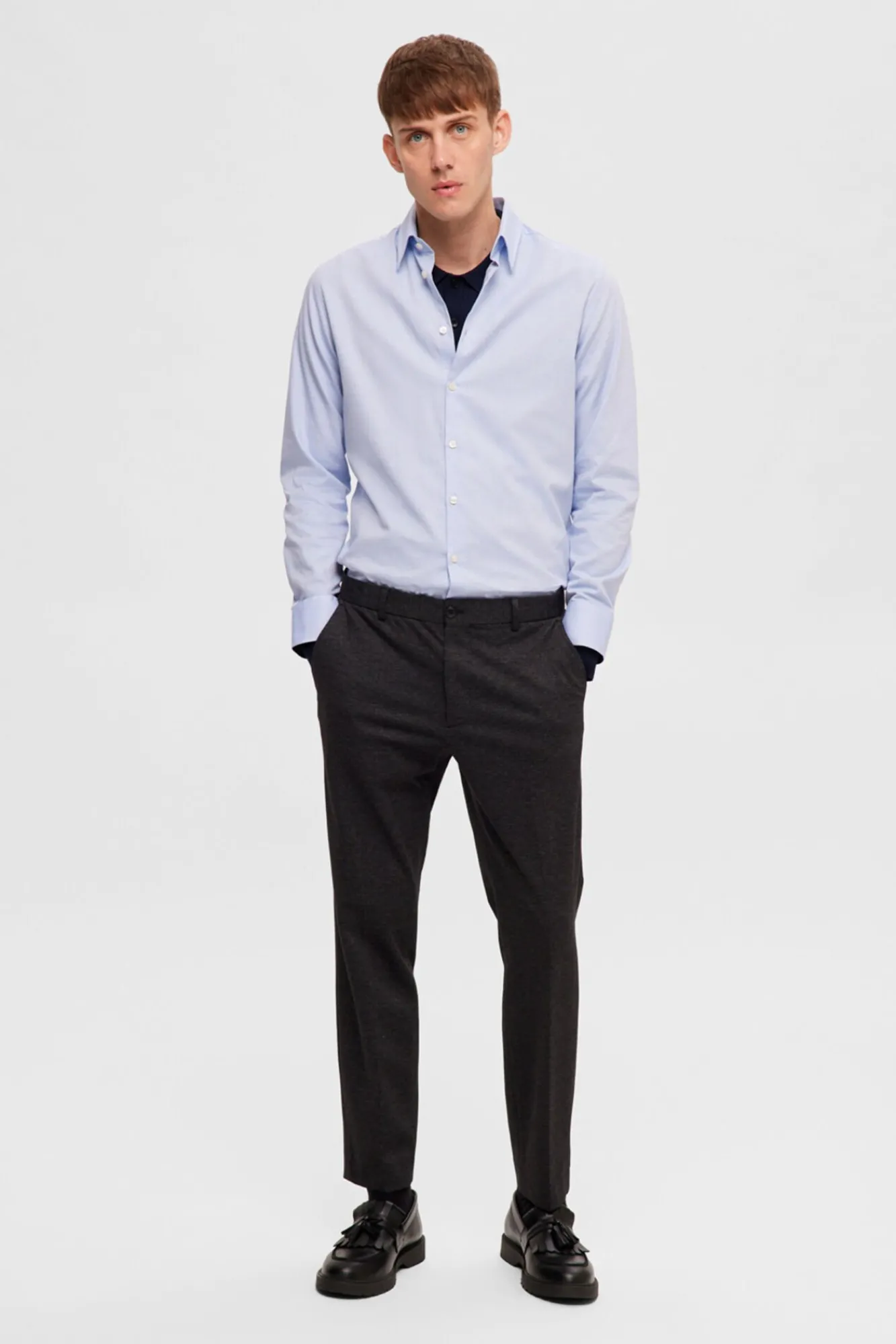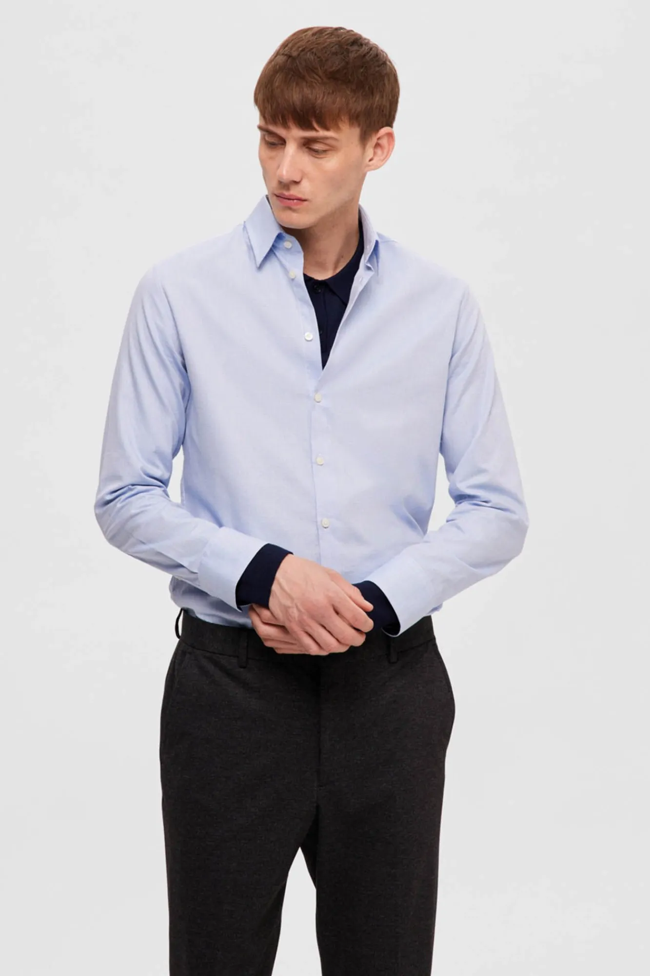 Selected Camisas|Camisas Clássicas-Camisa de algodão orgânico Slim Fit. Azul