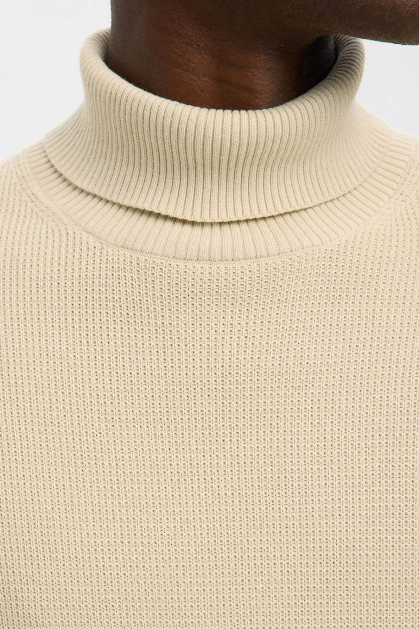 Selected Camisolas-Camisola de gola 100% algodão orgânico Tostado