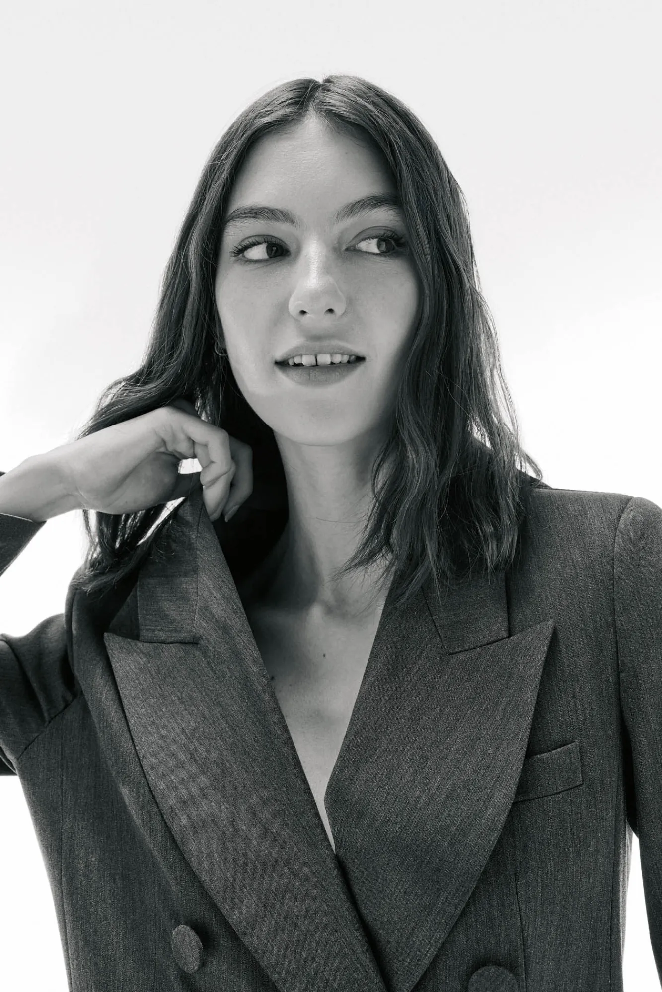 – Gola de lapela, bolsos para carteira e botões forrados