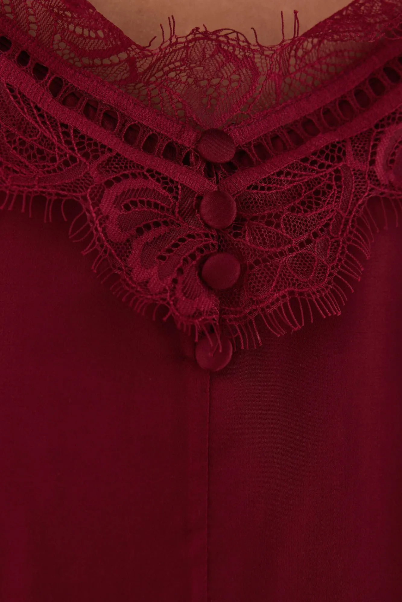 – Detalhe de botões forrados no decote decote
