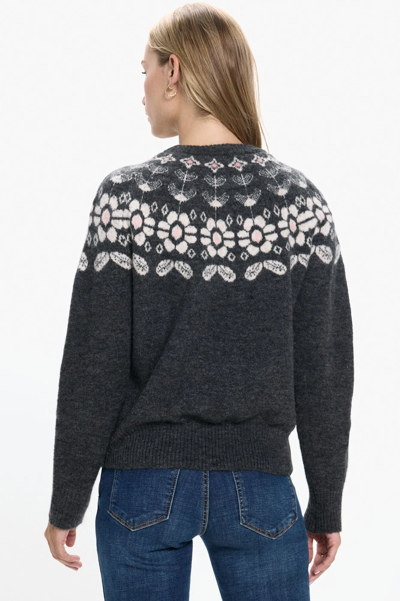 53% poliéster, 23% acrílico, 16% nylon, 5% lã, 3% elastano