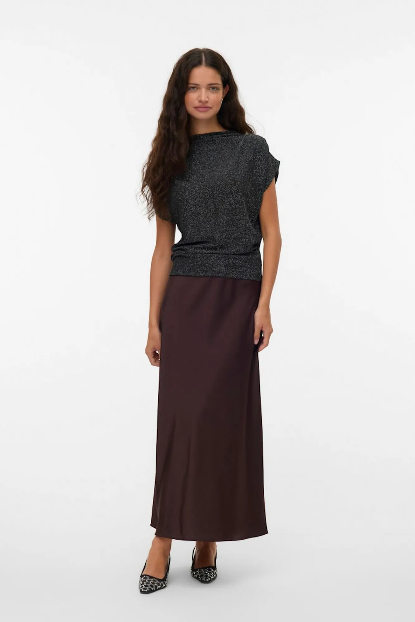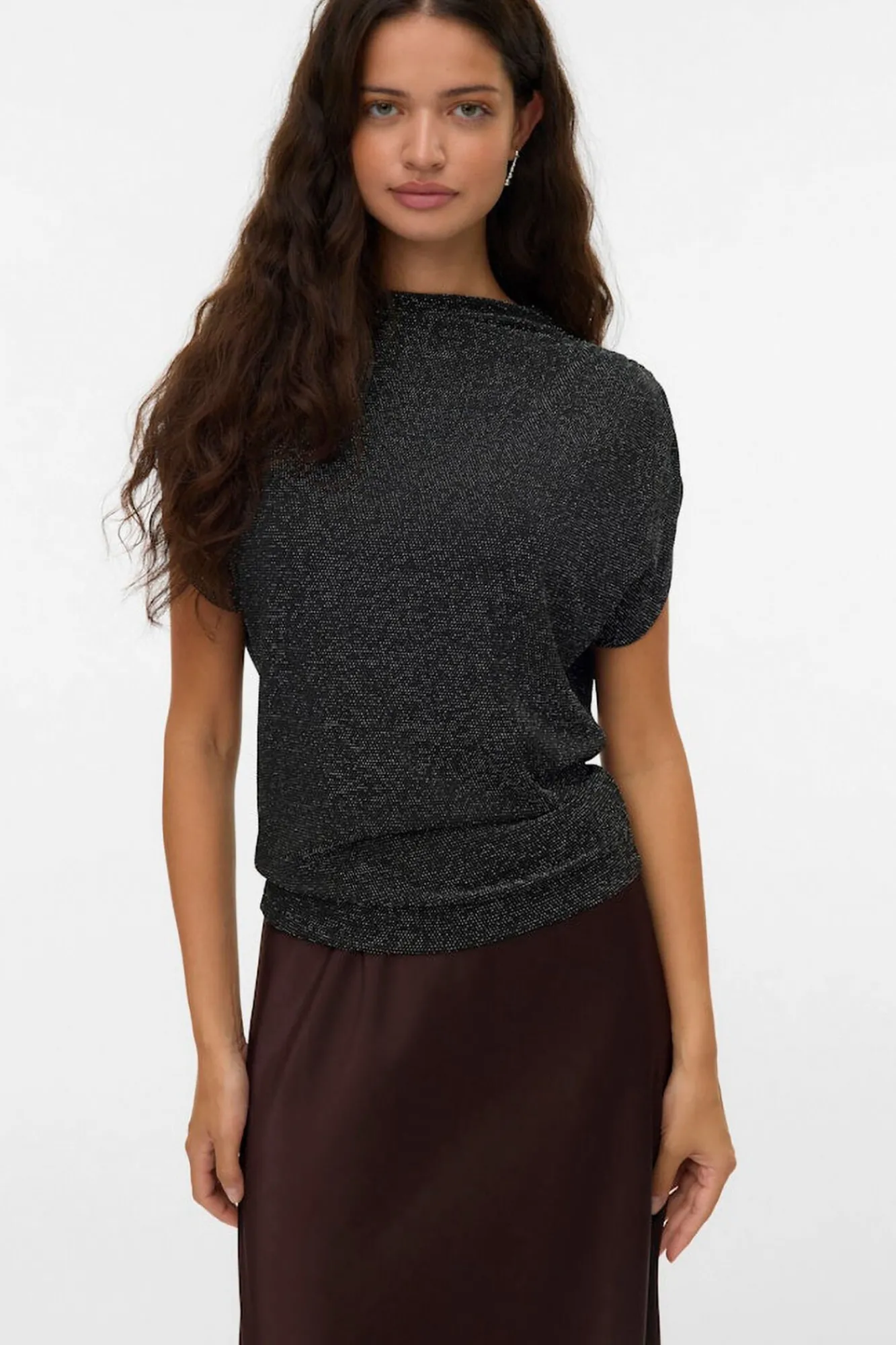 – Tecido elástico com detalhes em lurex.