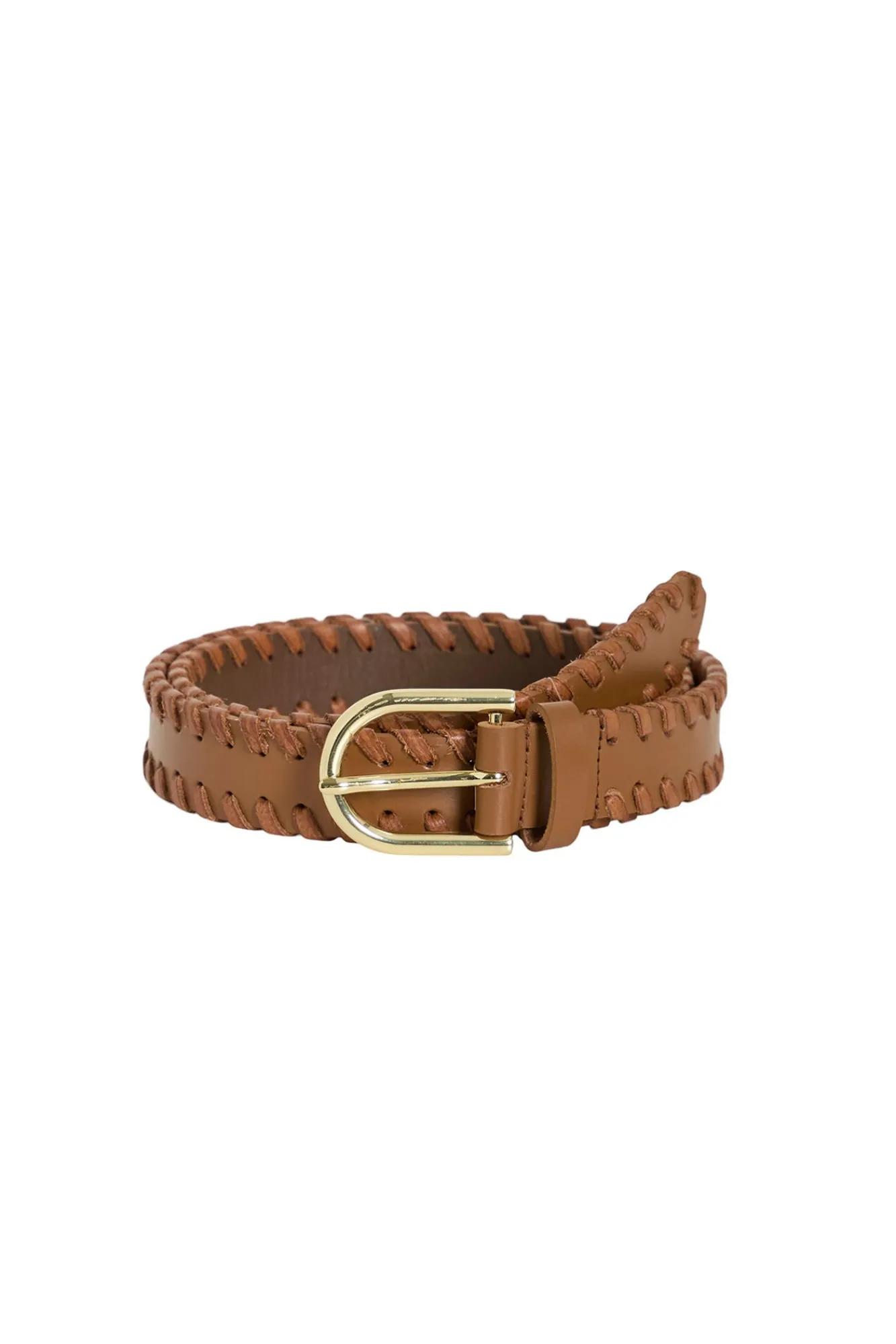 -Detalhe de costura de couro ao longo do cinto