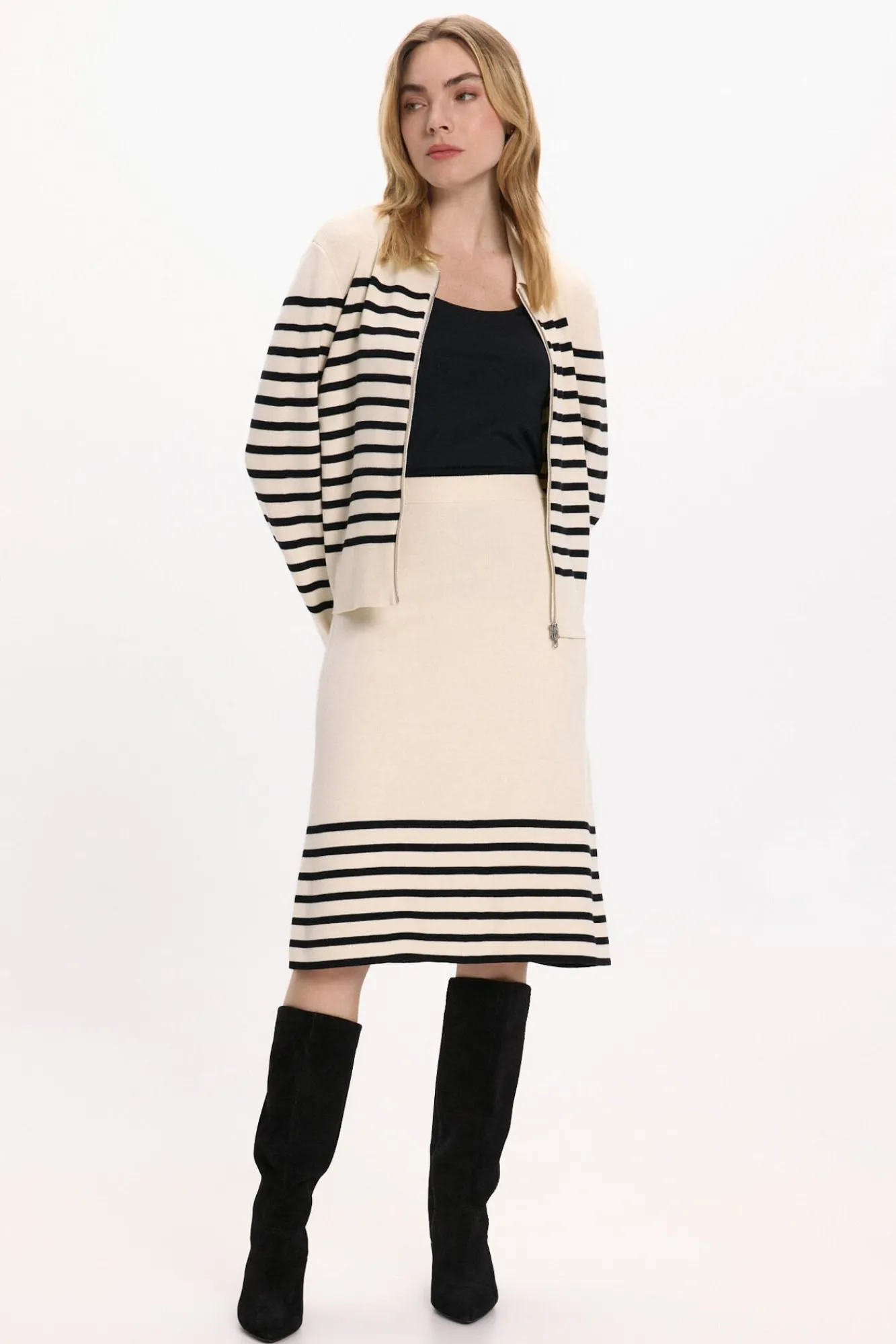 – Detalhe riscas na parte inferior e na cintura