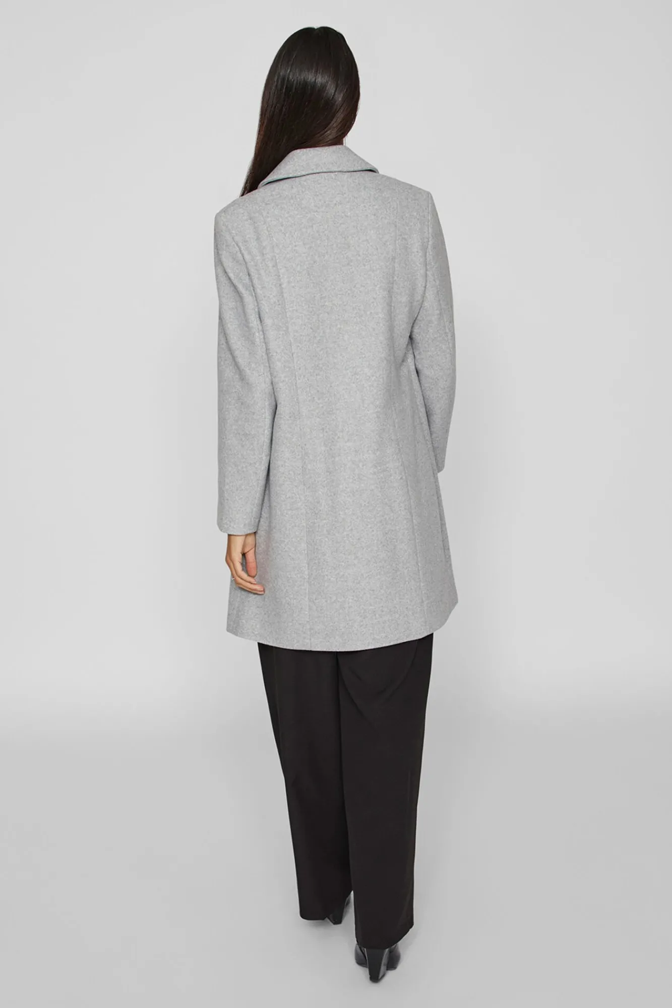 – Decote em V com abotoamento frontal