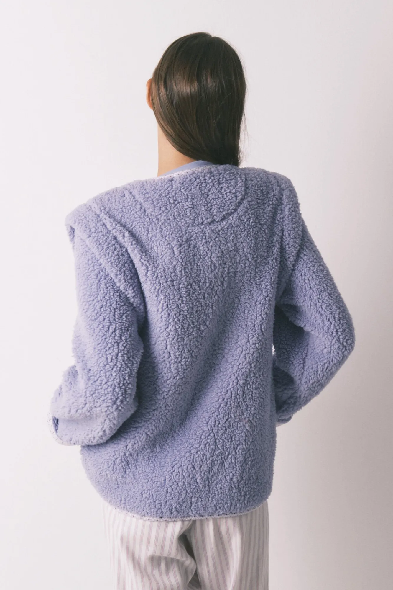 – Fecho-Éclair de zíper combinando, ombros estruturados e punhos das manga com bainha.