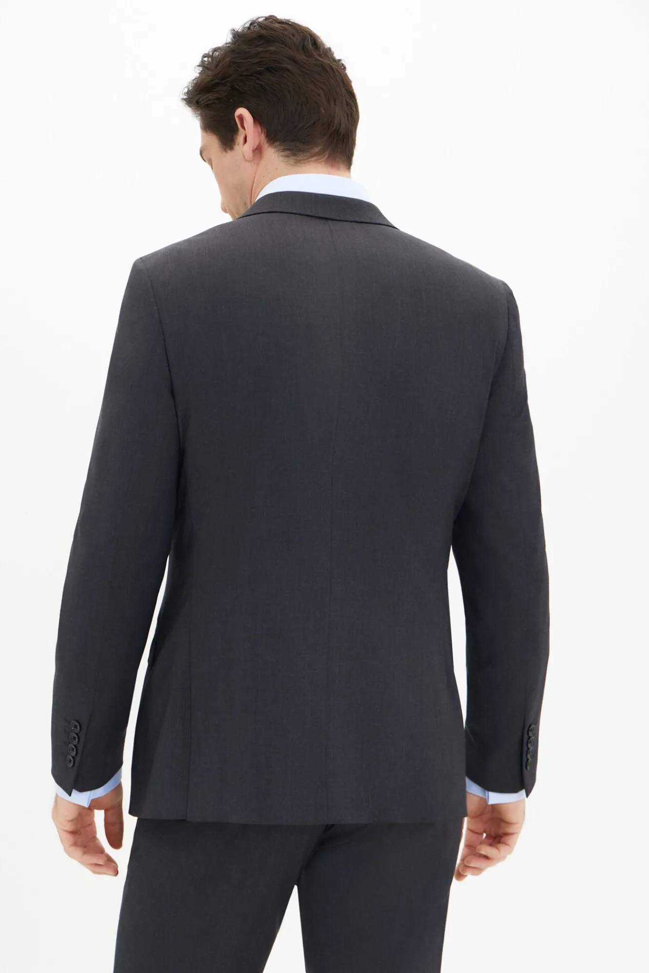 – Dois botões. Lapela pontiaguda. Duas aberturas traseiras. Com forro e bolsos interiores