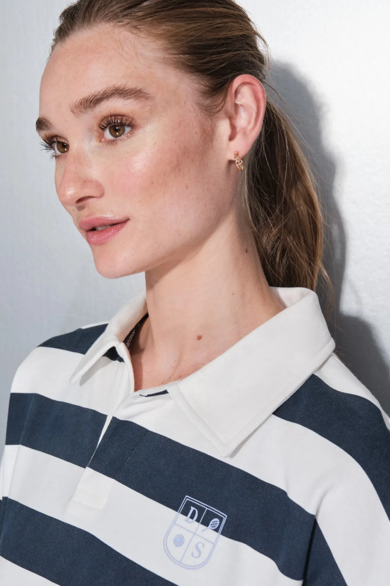 – Gola polo, manga caídas e punhos, baixo e gola canelados.