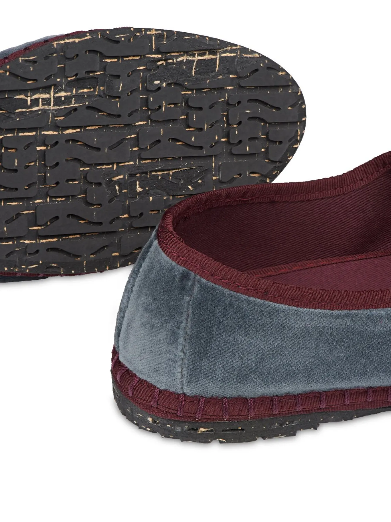 -O exterior do sapato é 100% veludo de algodão e o interior do sapato é 100% algodão orgânico com tratamento antibacteriano.