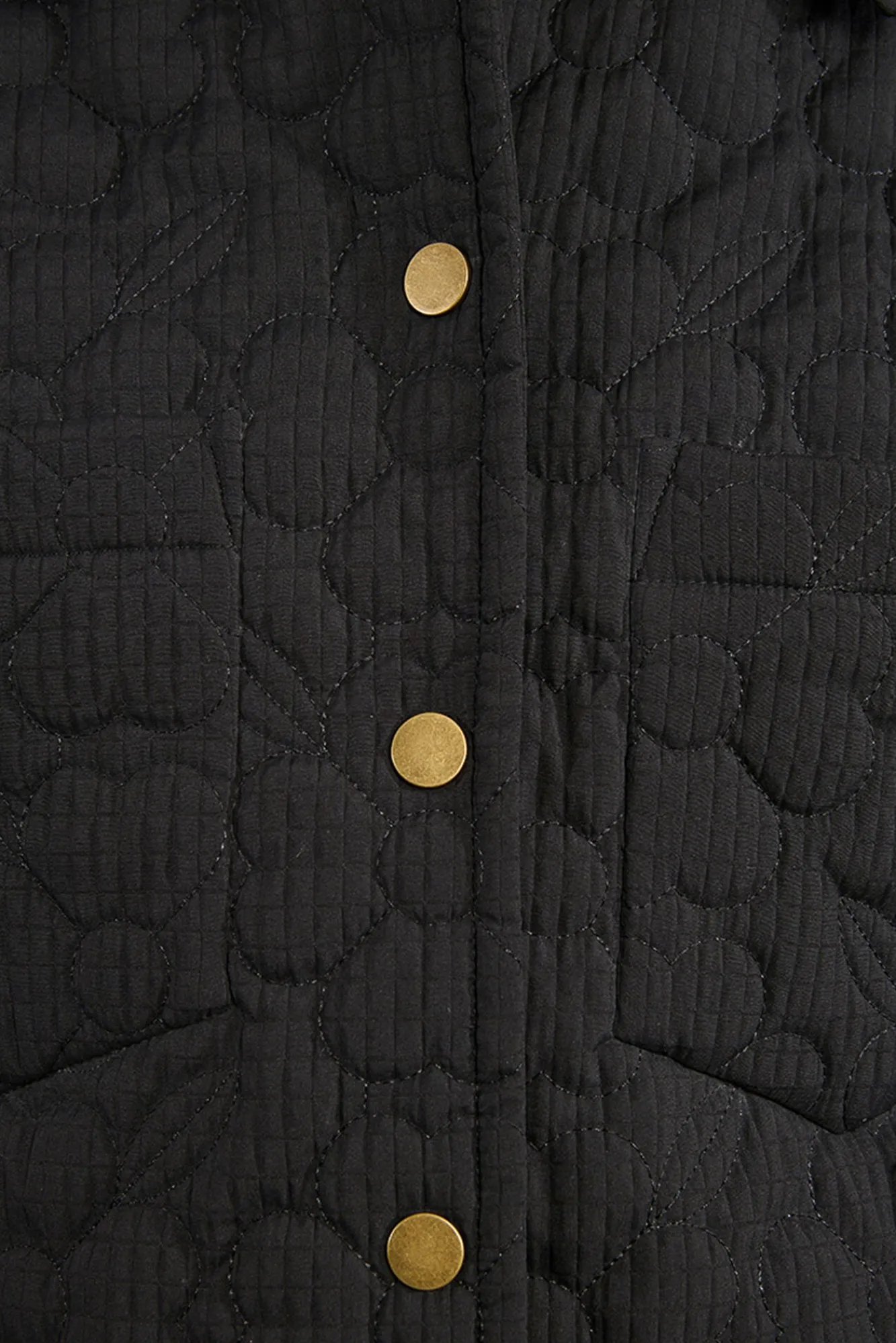 – Modelo com flores e fecho frontal por botões.