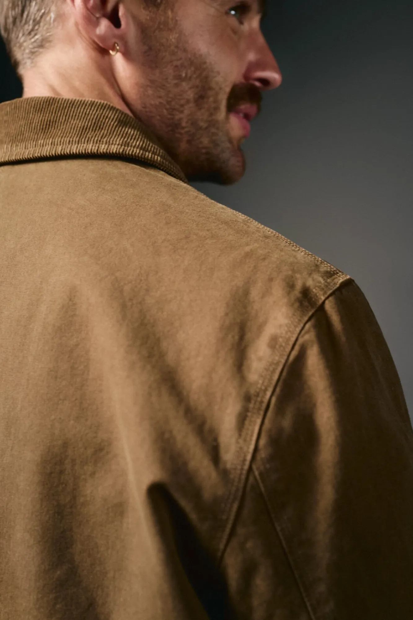 – Blusão com zíper e lapelas de pressão, gola de veludo cotelê contrastante, 2 bolsos externos com fechos de pressão