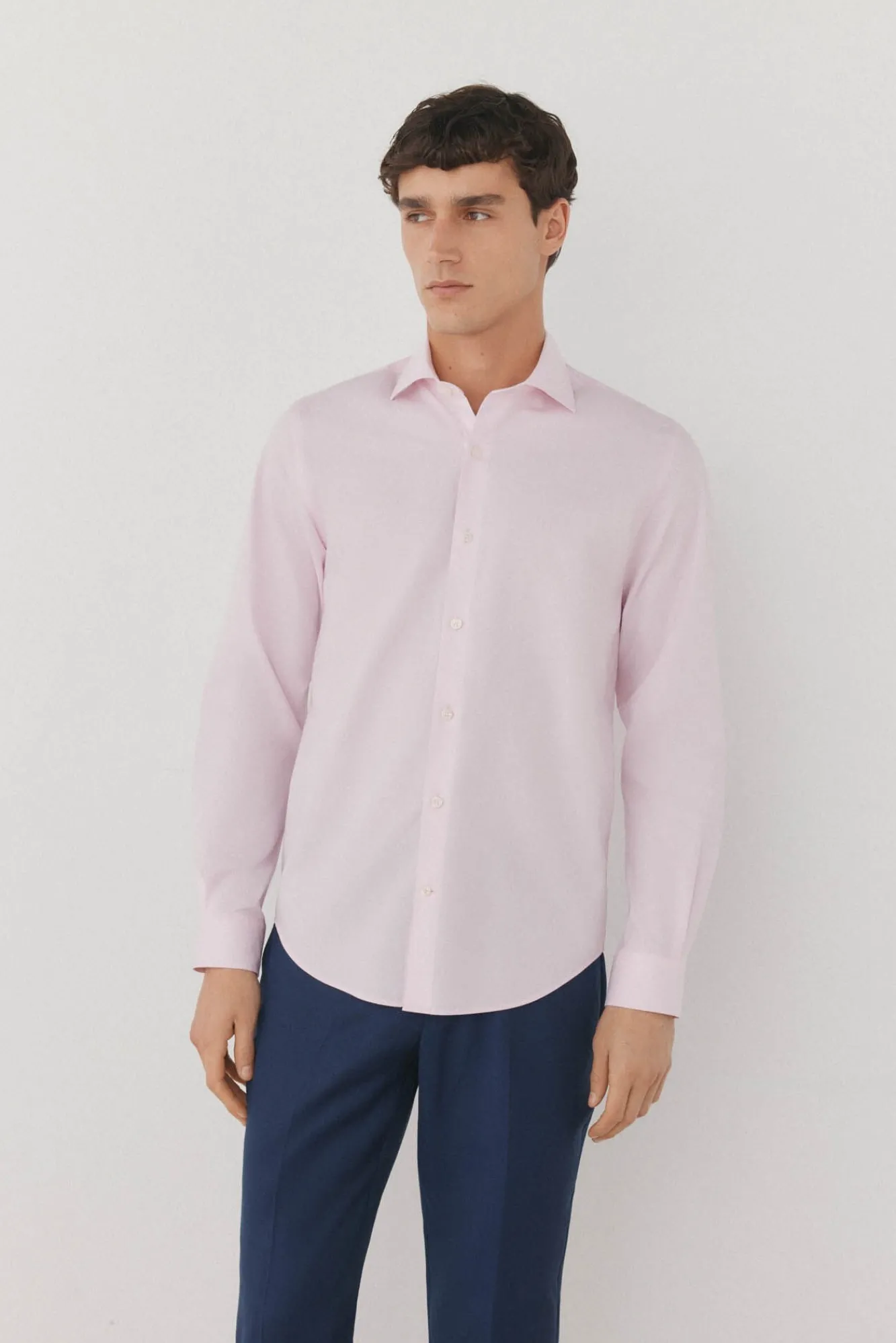 – Tecido pinpoint em 100% algodão com acabamento não ferroso e resistente a manchas