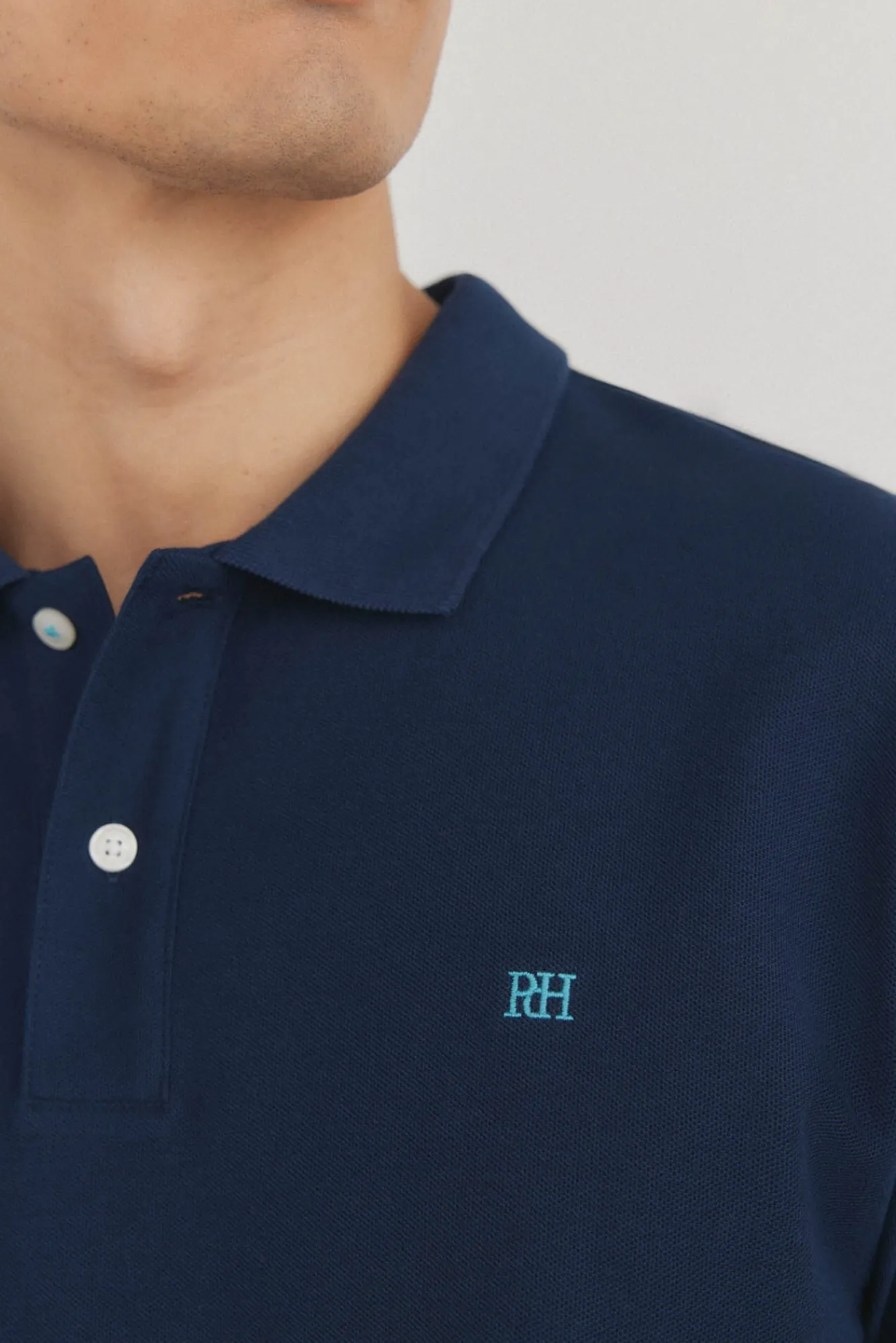 – Carcela frontal botões, logo bordado contrastante no peito