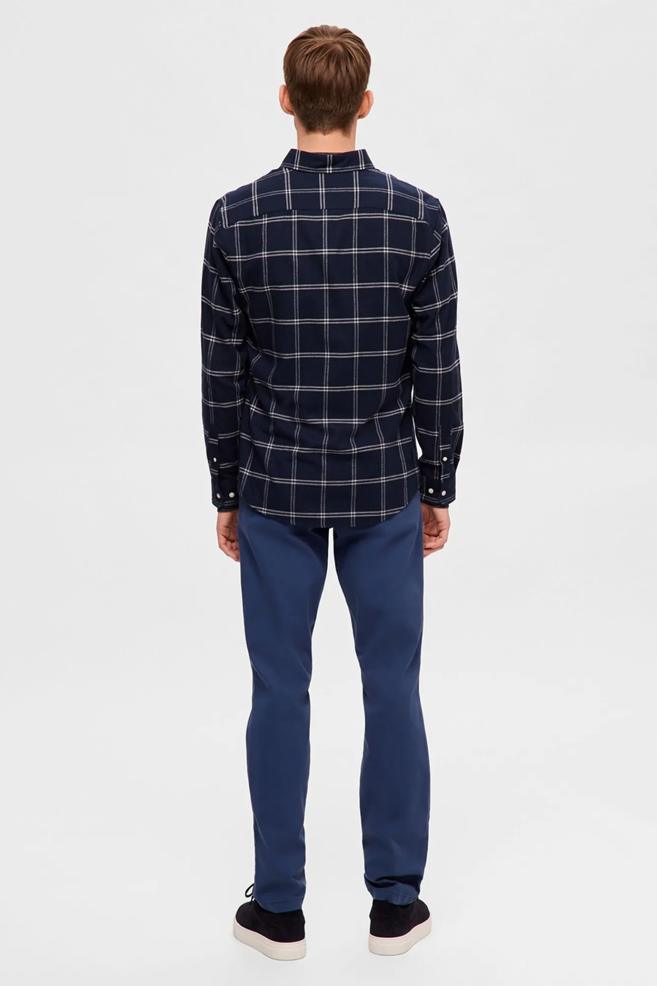 Selected Camisas-Camisa de manga comprida com corte slim Azul