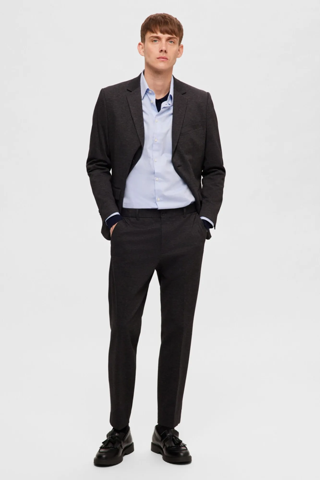 Selected Camisas|Camisas Clássicas-Camisa de algodão orgânico Slim Fit. Azul