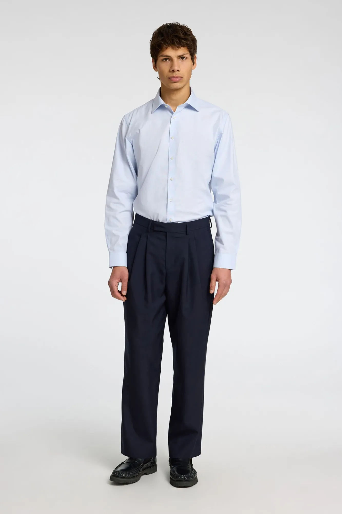 Selected Camisas|Camisas Clássicas-Camisa de manga comprida elegante 100% algodão Azul
