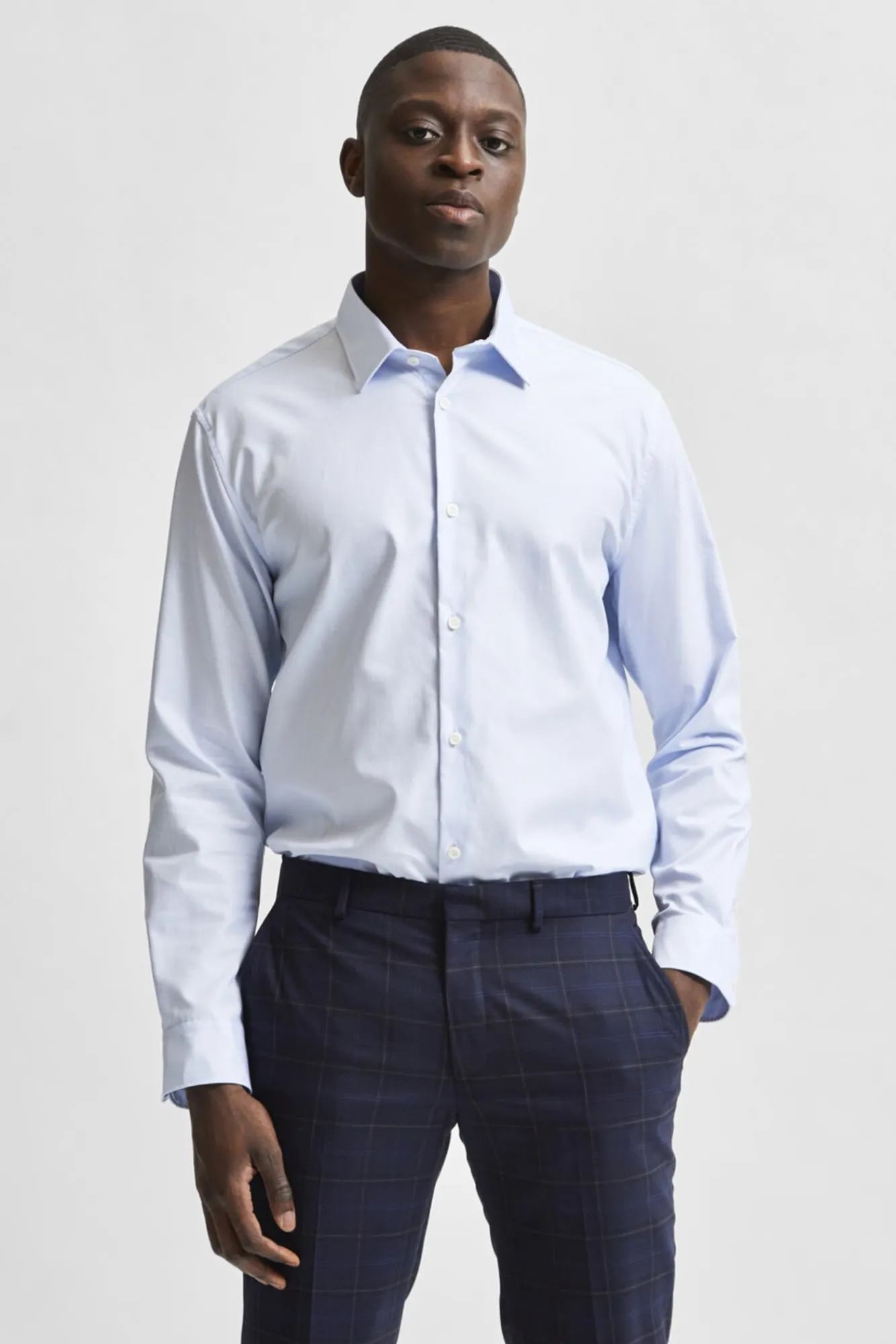 Selected Camisas|Camisas Clássicas-Camisa de vestir de manga comprida 100% algodão regular fit Azul