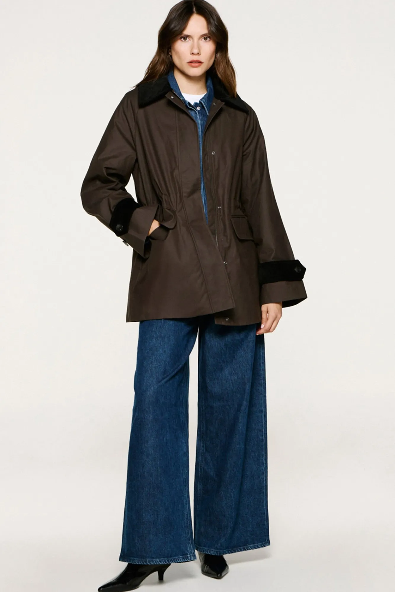 – Fecho de fecho-éclair e botão