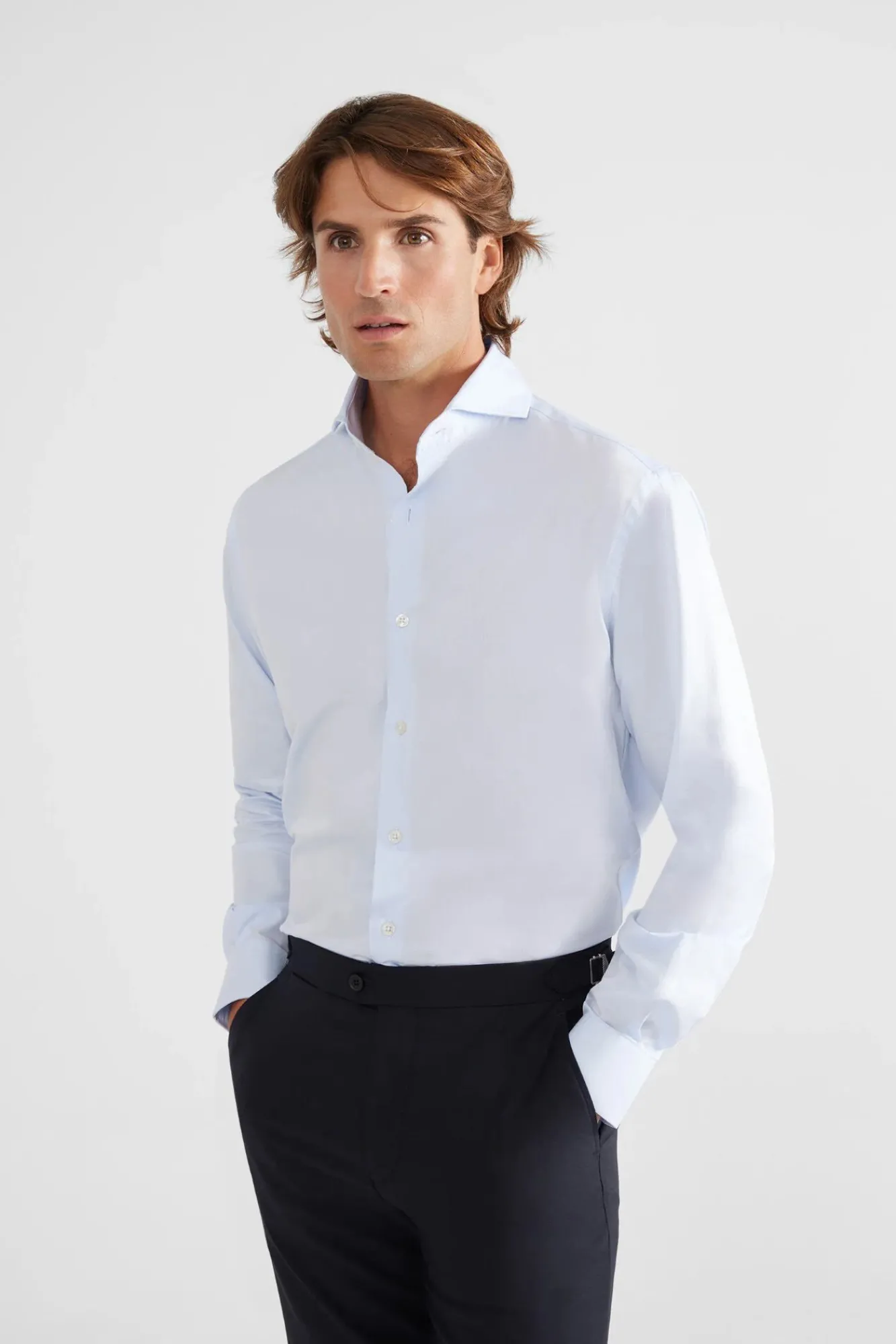 Silbon Camisas|Camisas Clássicas-Camisa de vestir punho simples Azul