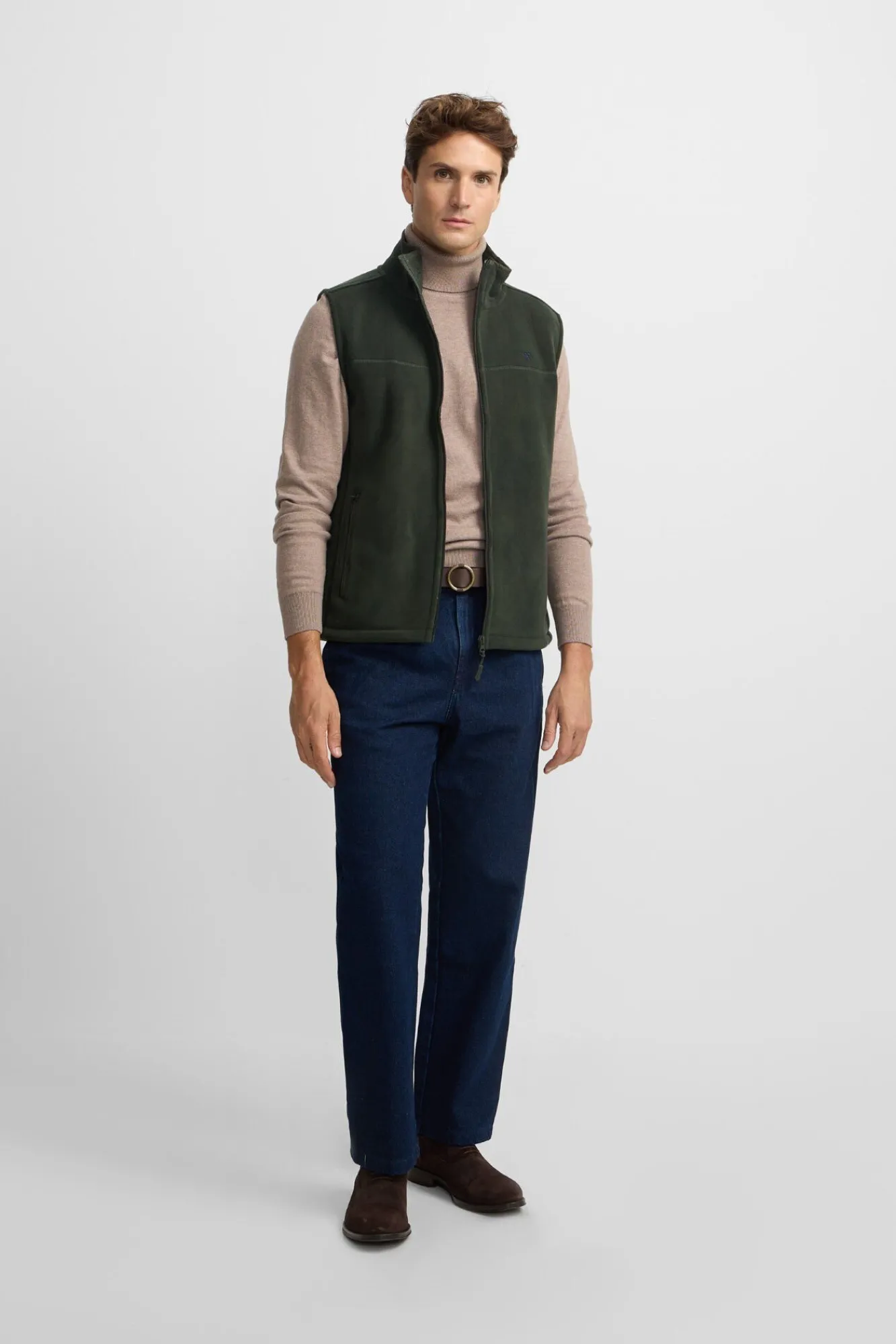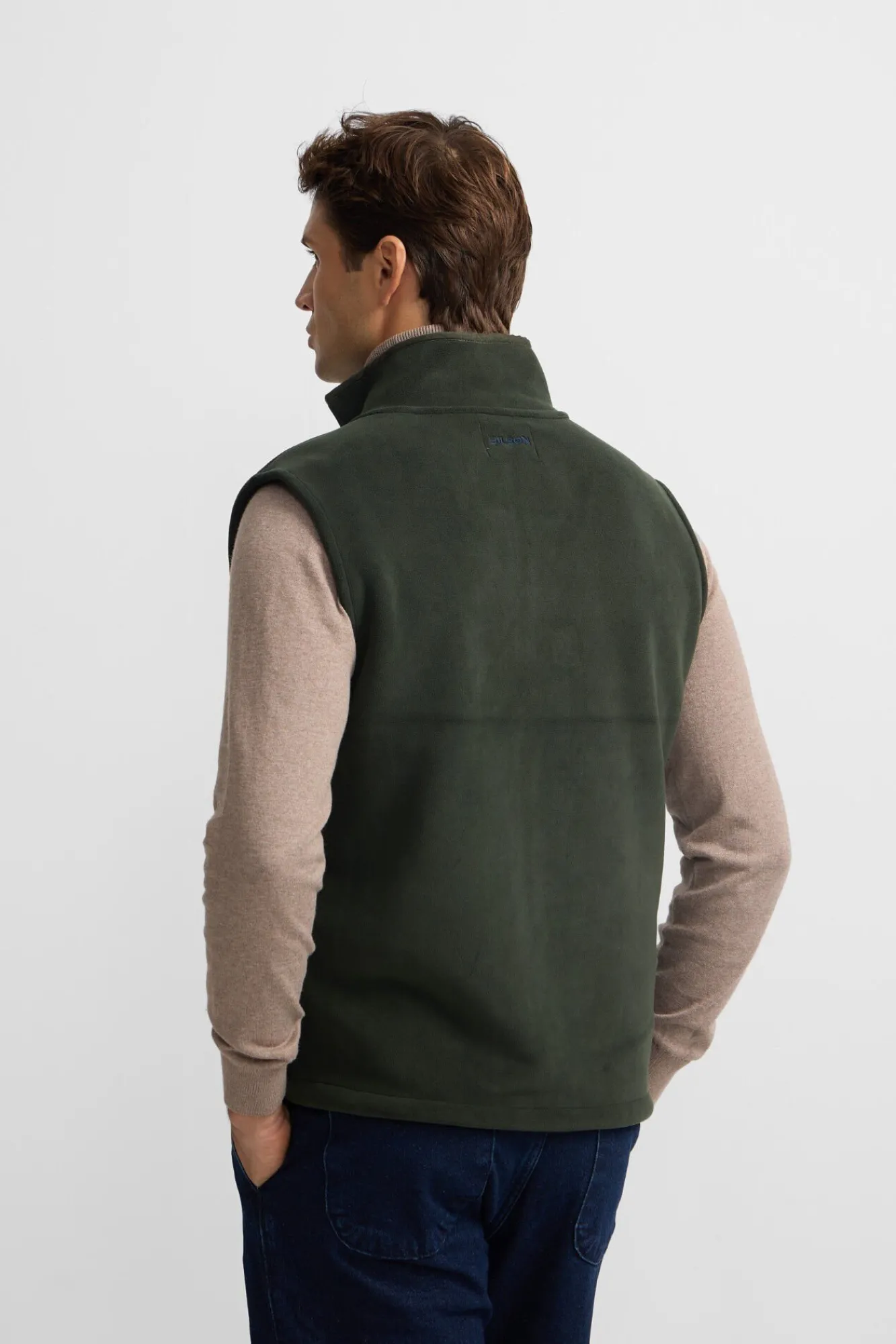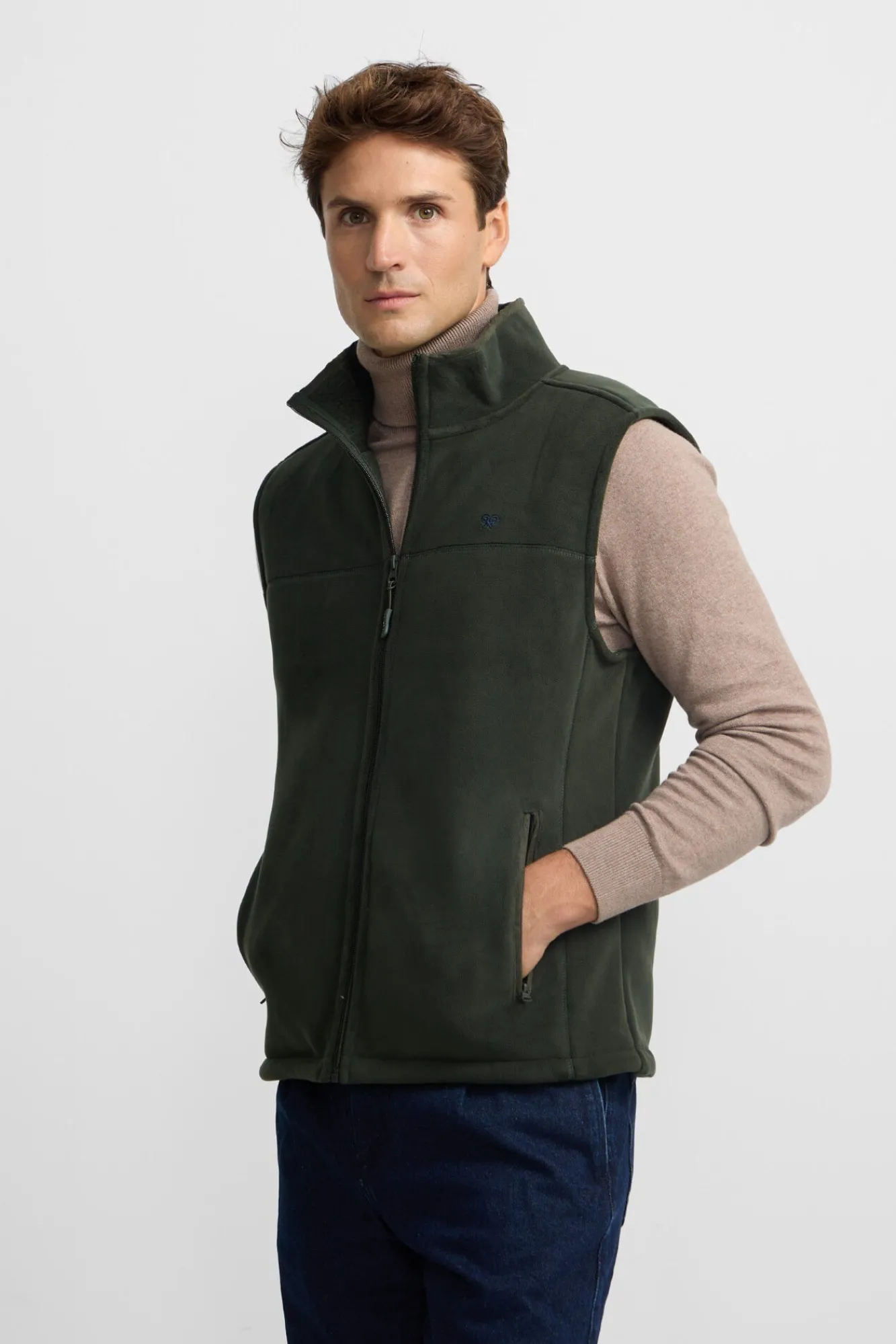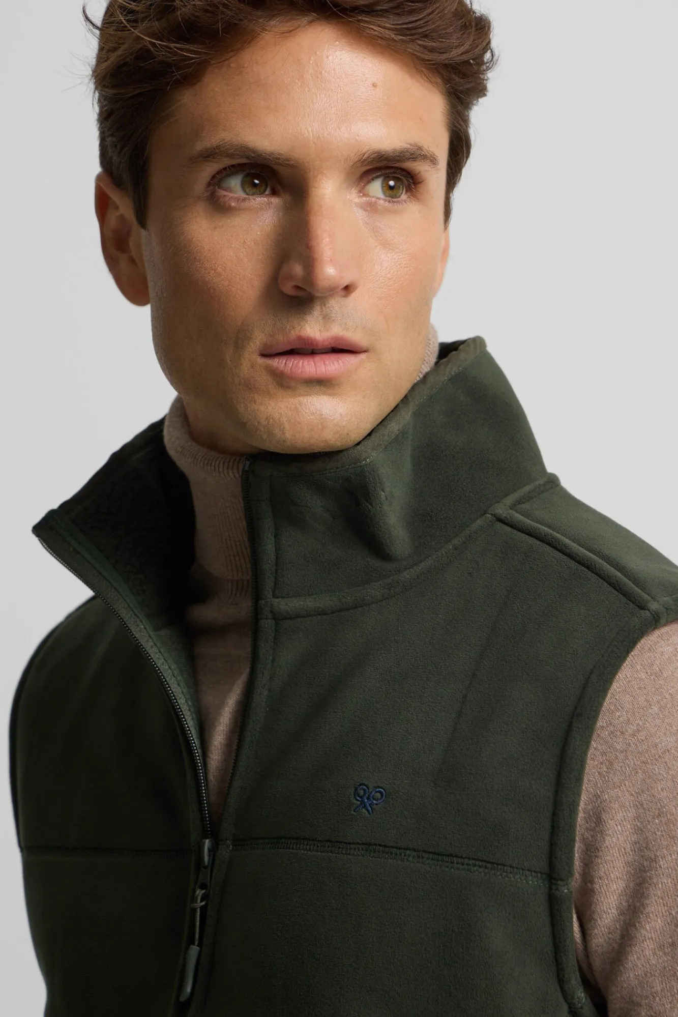 – Possui gola alta e fecho de fecho-éclair frontal com puxador personalizado
