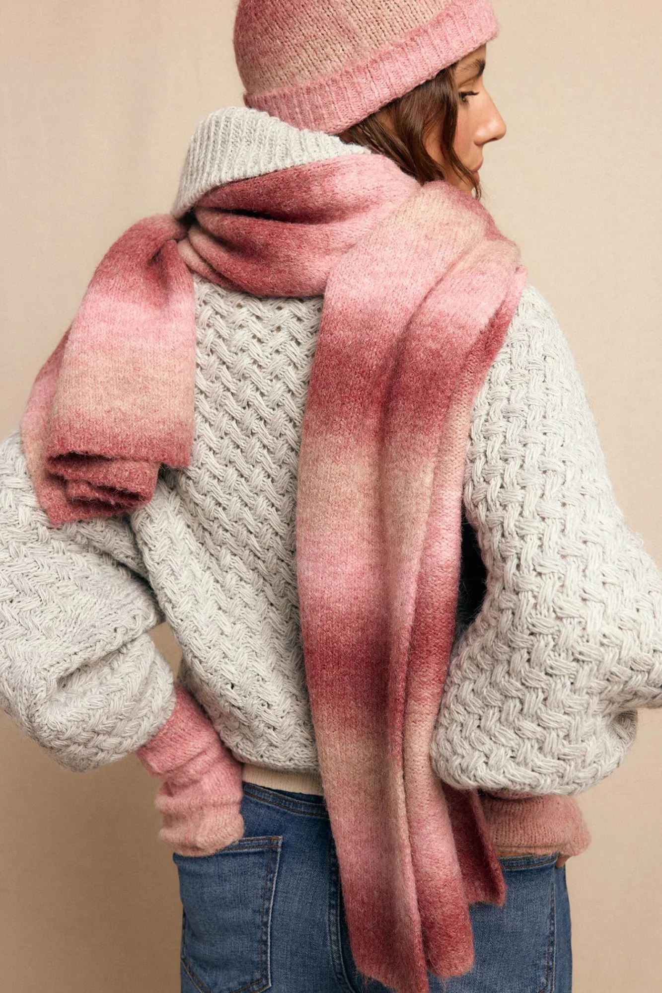 56% acrílico, 34% poliéster, 8% lã, 2% elastano